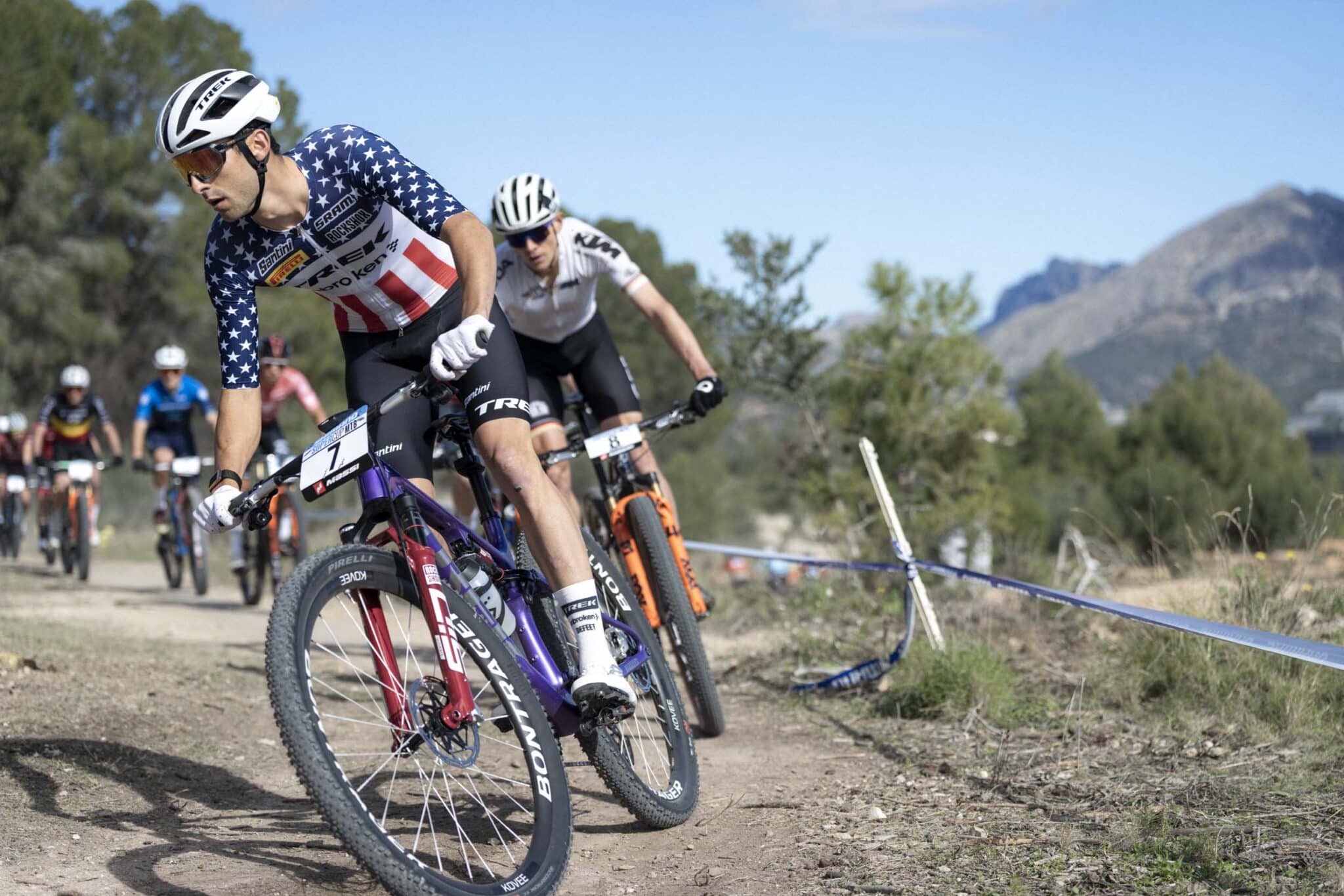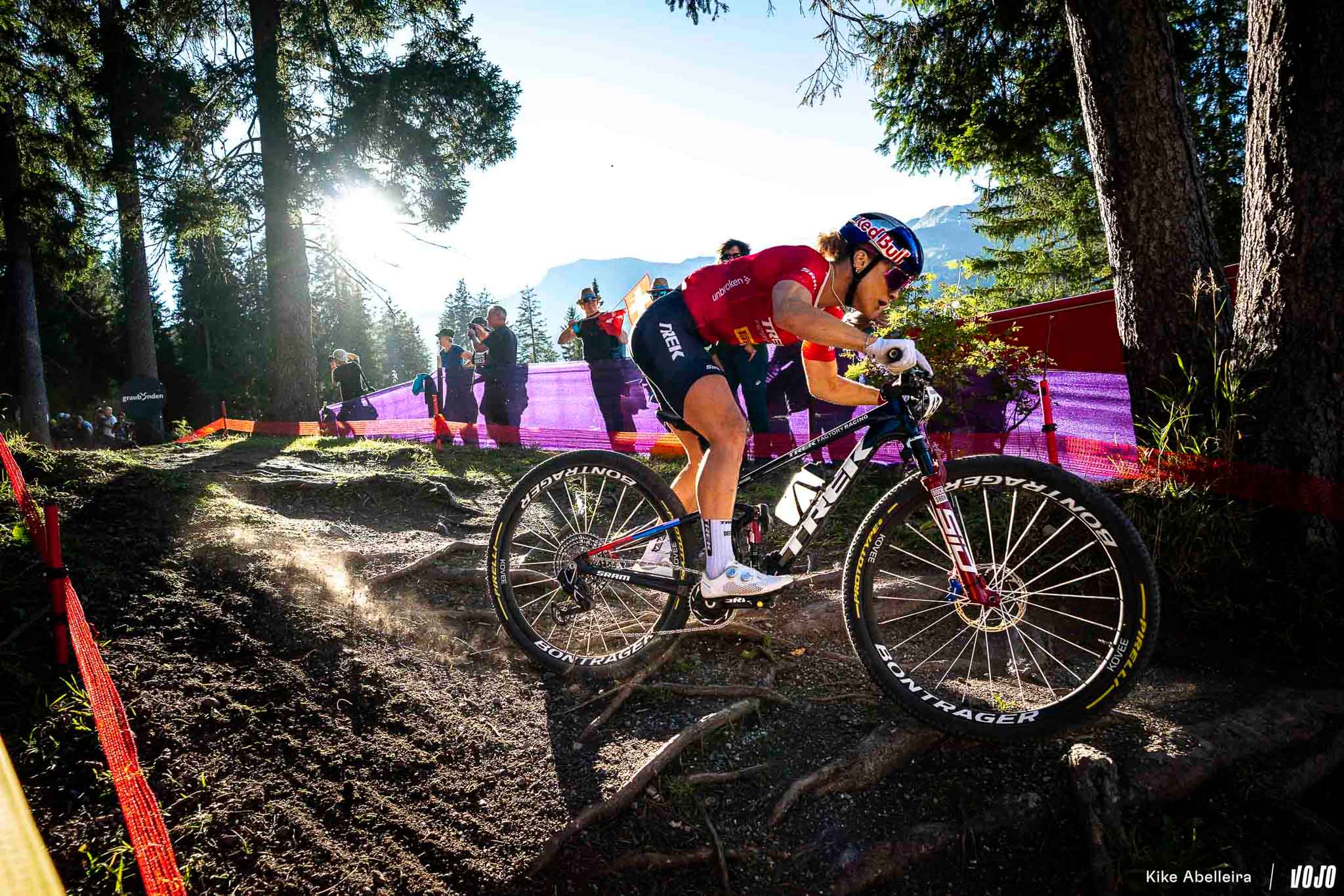 Sur beaucoup de courses cassantes (la quasi totalité de la saison 2025 en fait), les pilotes du team se sont donc retrouvés à rouler avec le Top Fuel… qui est davantage un vélo downcountry/all-mountain pensé pour le fun qu’un vrai vélo de XC pur et dur. Et même en le montant avec des suspensions XC en 120 mm et le Flight Attendant de RockShox, il restait en retrait par rapport aux vélos de la concurrence.