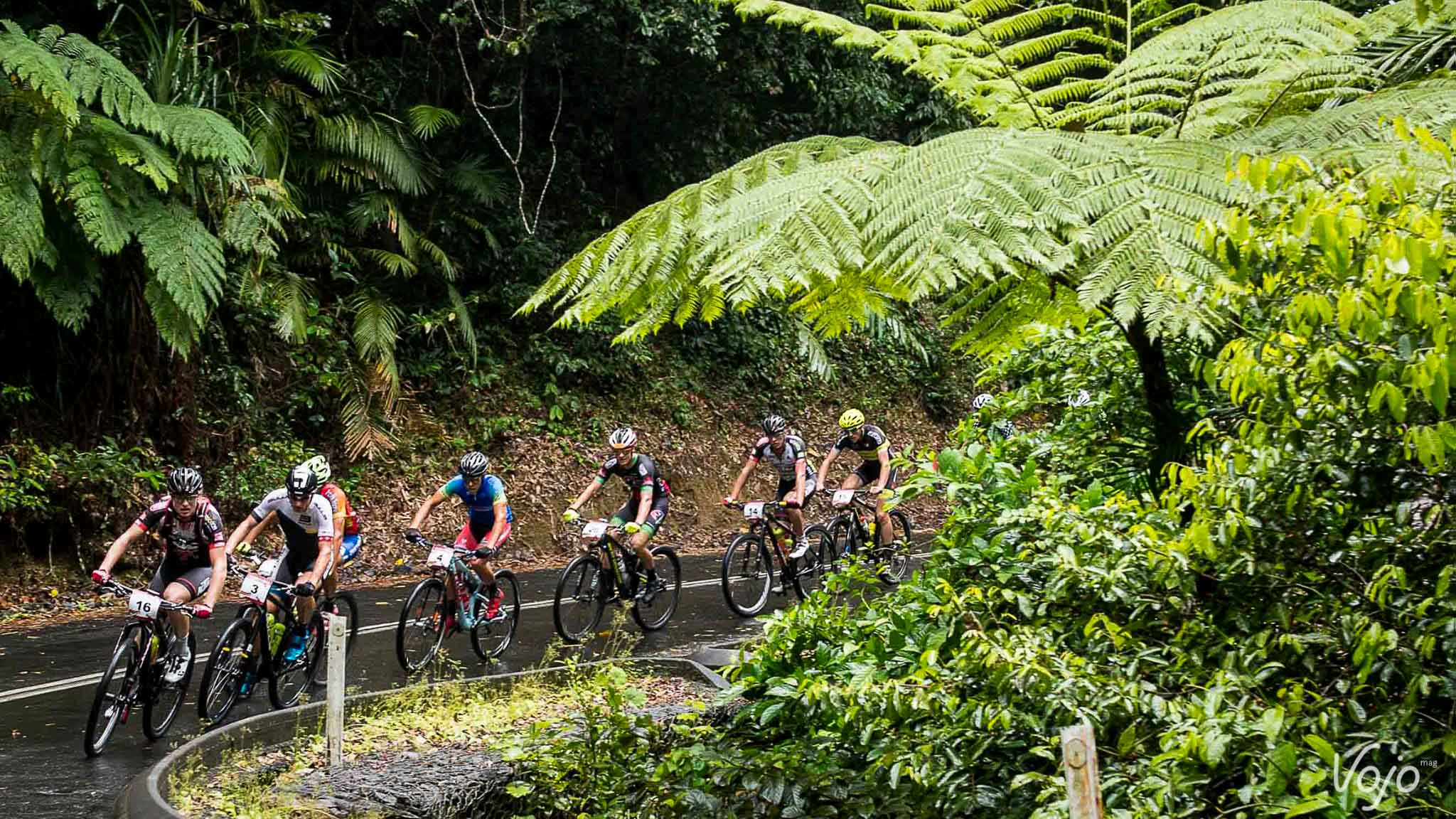Voilà cher lecteur, le décor est planté, et il ne ressemble pas vraiment à ce que tu as déjà vu en Europe. Pour t’y habituer, la première étape sera plutôt classique. Une sorte de mise en bouche pour te remettre du jetlag, avec 5 tours d’un circuit tracé à Smithfield, à quelques kilomètres au nord de Cairns. Au menu, une sorte d’archétype des circuits de XCO actuels avec des sauts, des virages relevés et des bosses courtes qui demandent de l’explosivité.