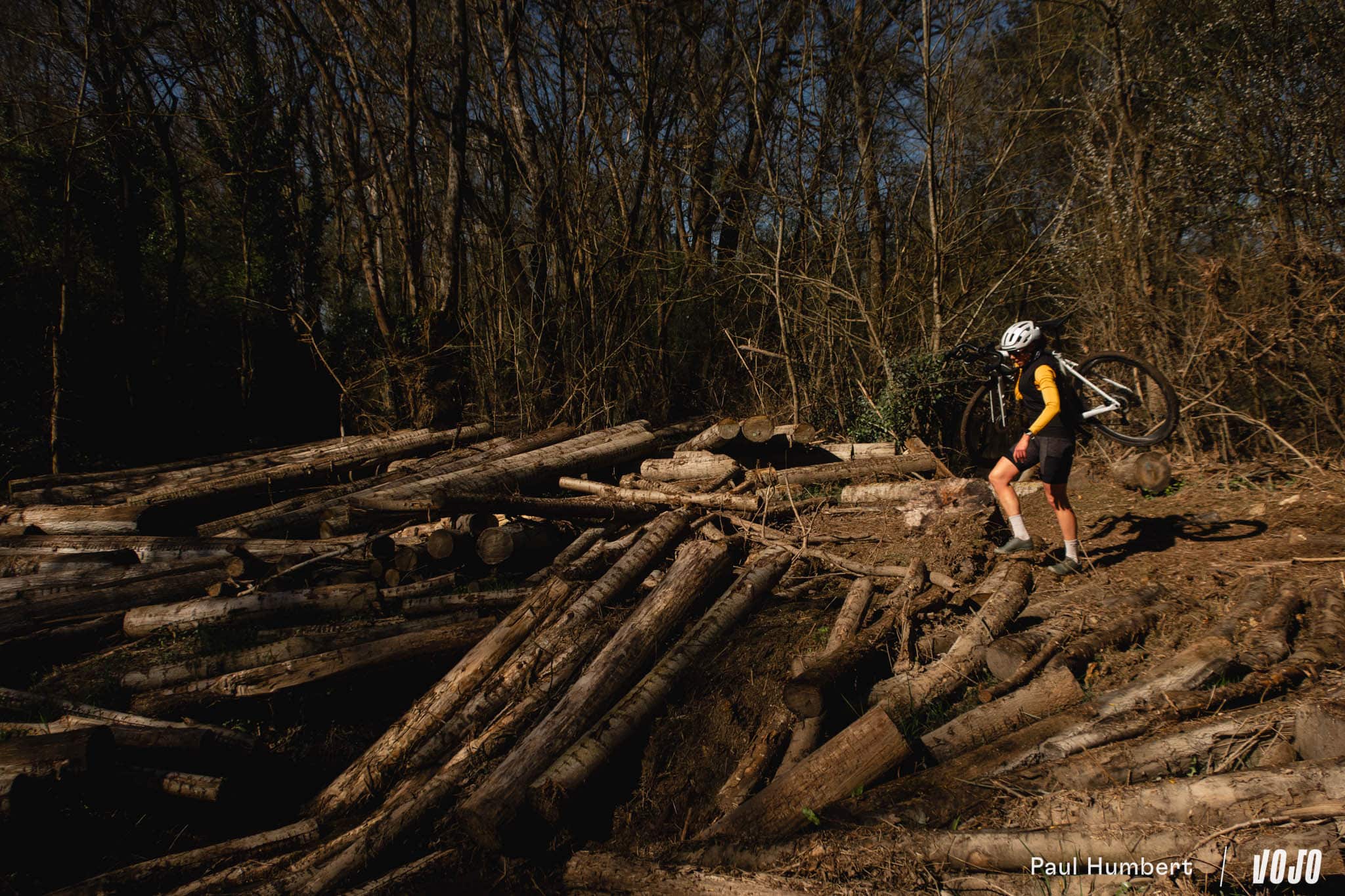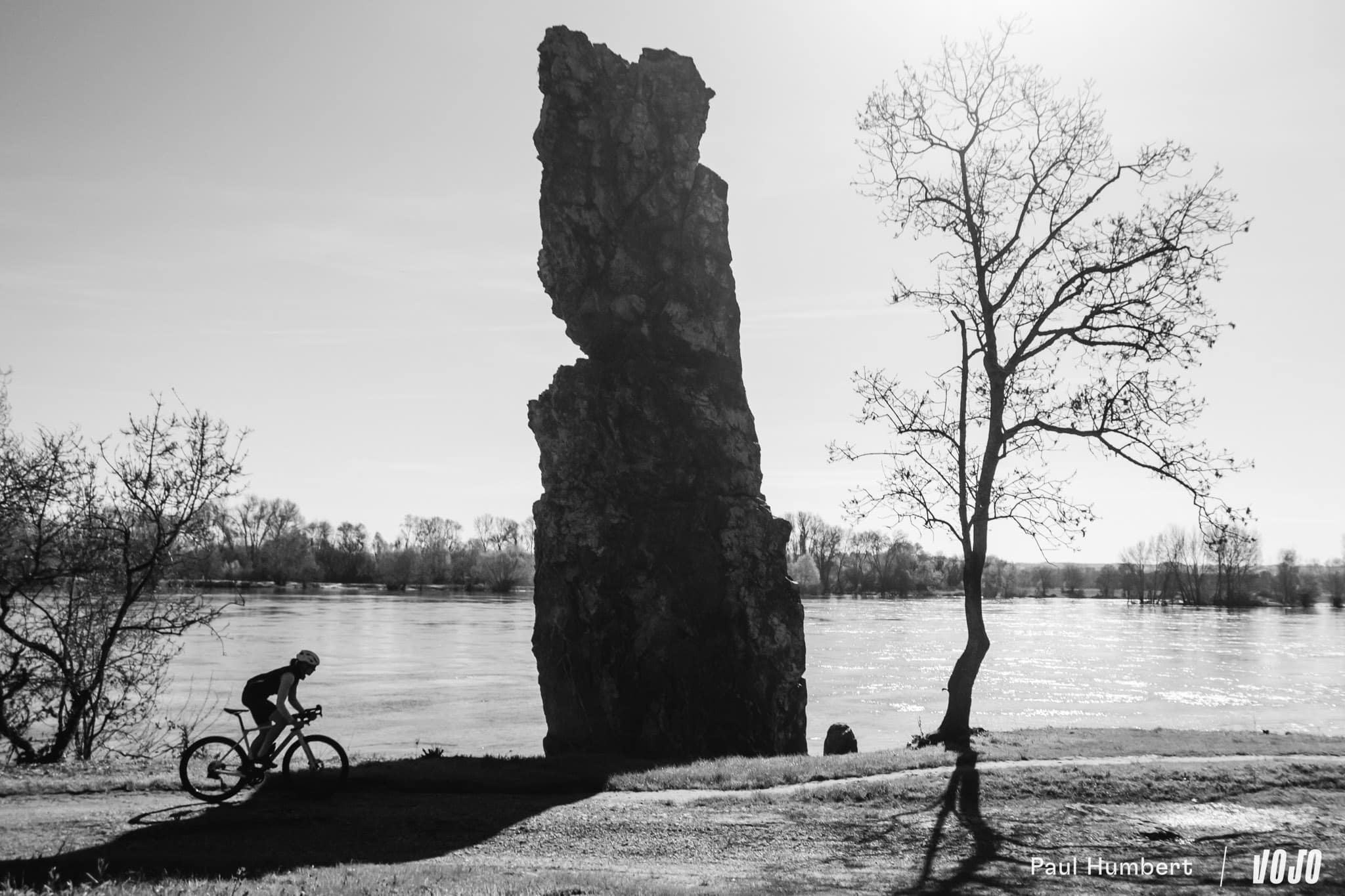 On traverse le vignoble du Layon et on change d’ambiance en pénétrant ensuite dans les immenses bois de Beaulieu. Les pistes sont belles. Encore humides par endroits, mais les premières chaleurs du printemps viennent drainer l’eau des récentes inondations et on file droit, là où des combats firent rage à la fin du XVIIIe siècle pendant les guerres de Vendée.