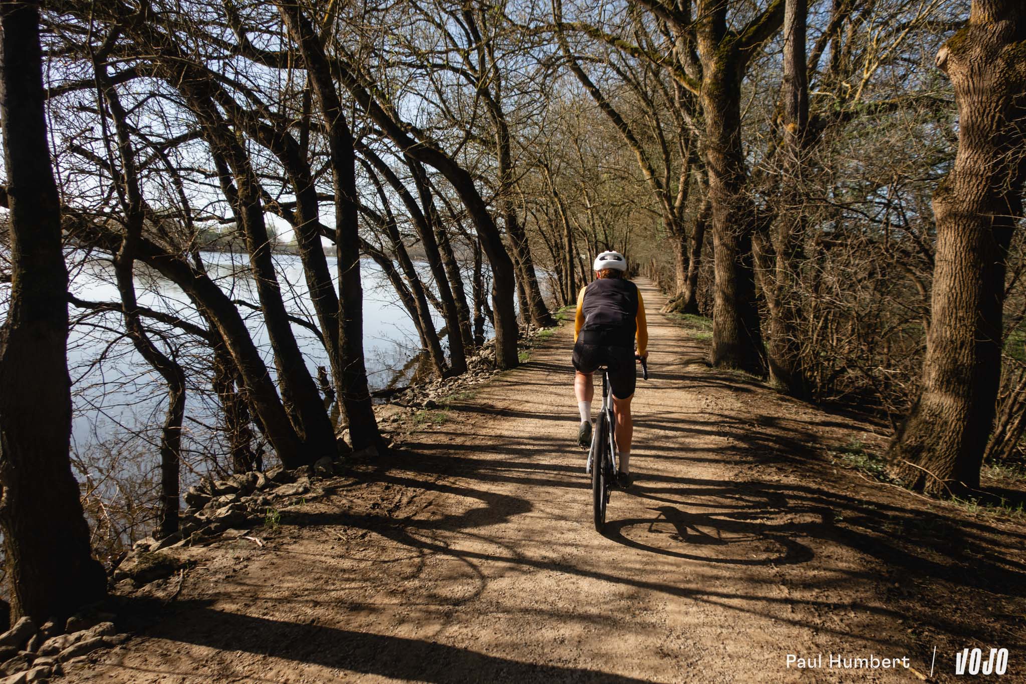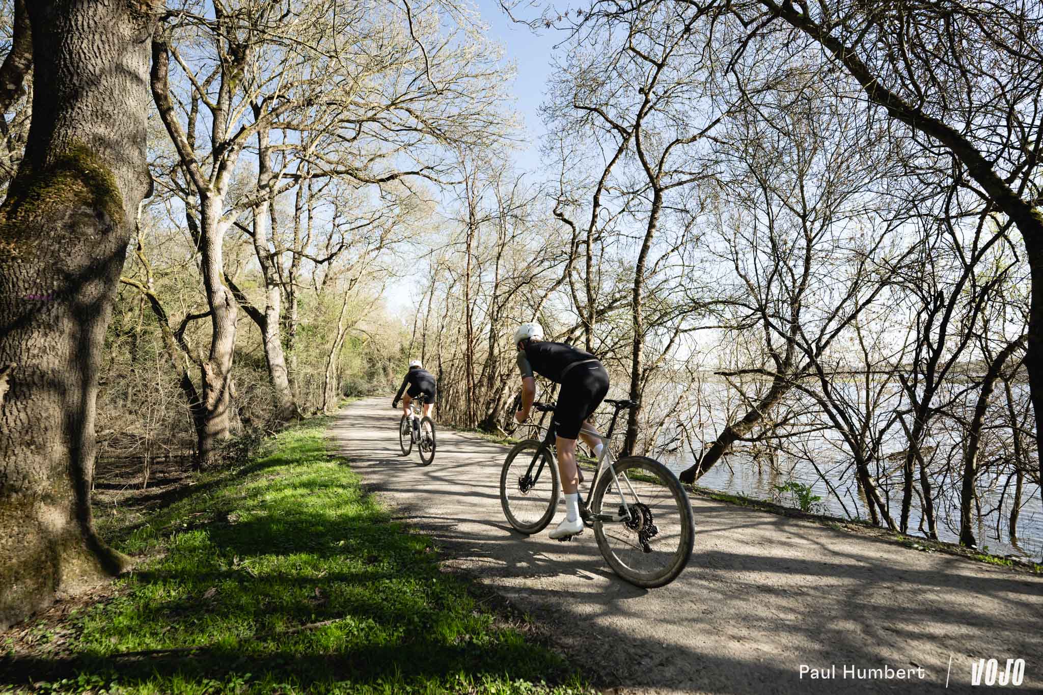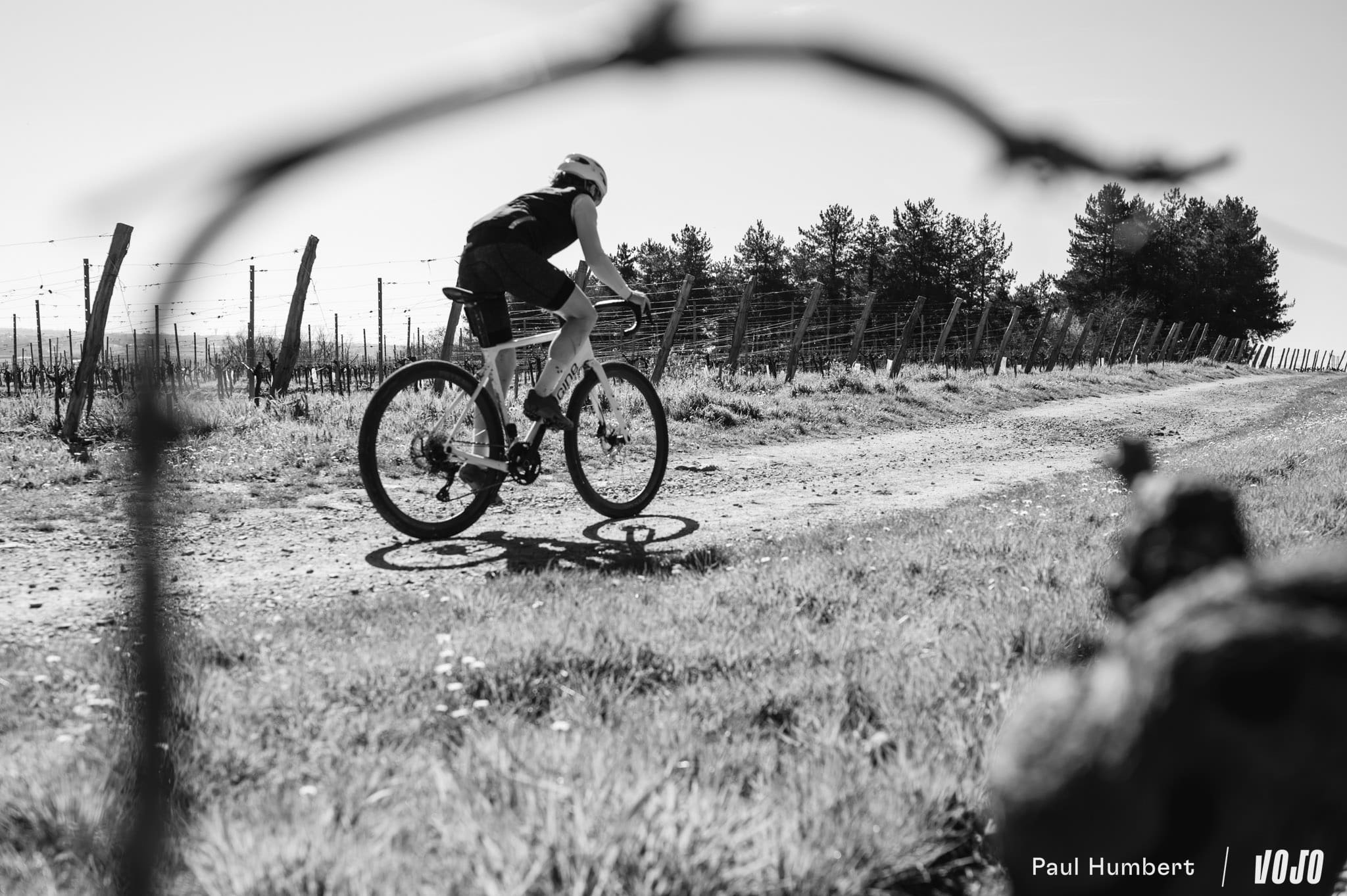 À la lisière des bois, avec des champs sur notre droite et une piste lisse aux reflets orangés, le coin aurait presque un petit air de Gérone, avec son réseau de chemins qui semble infini. On doit dire qu’avec une rédaction au cœur des Alpes, rouler en gravel sur un terrain où il s’épanouit, c’est un véritable plaisir au printemps.