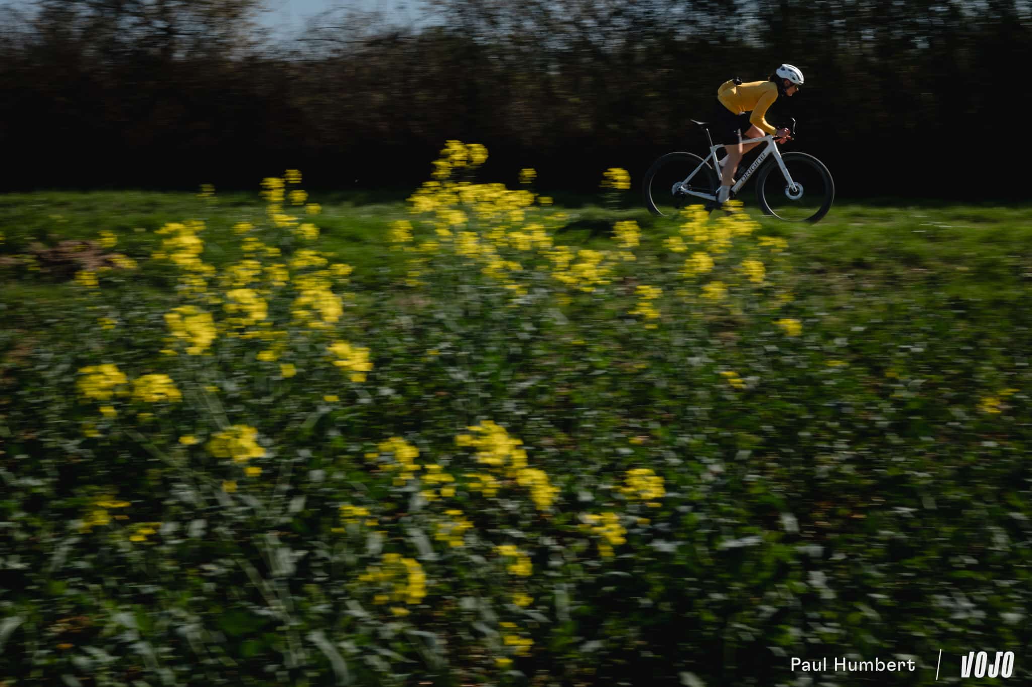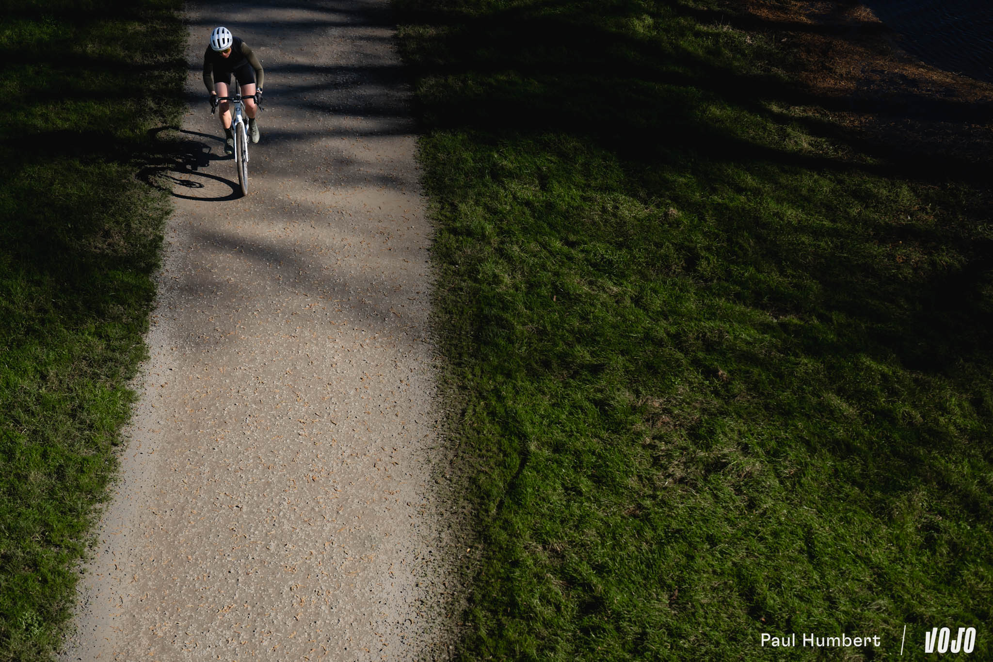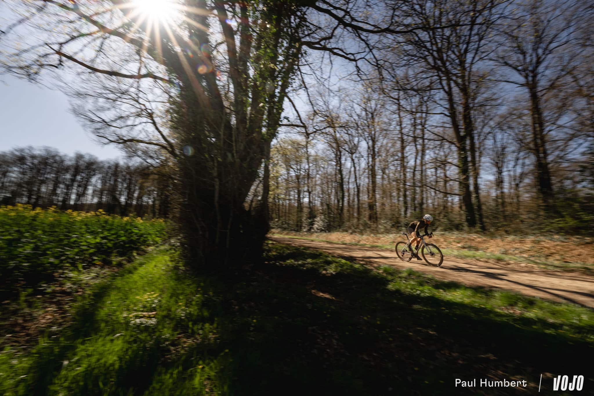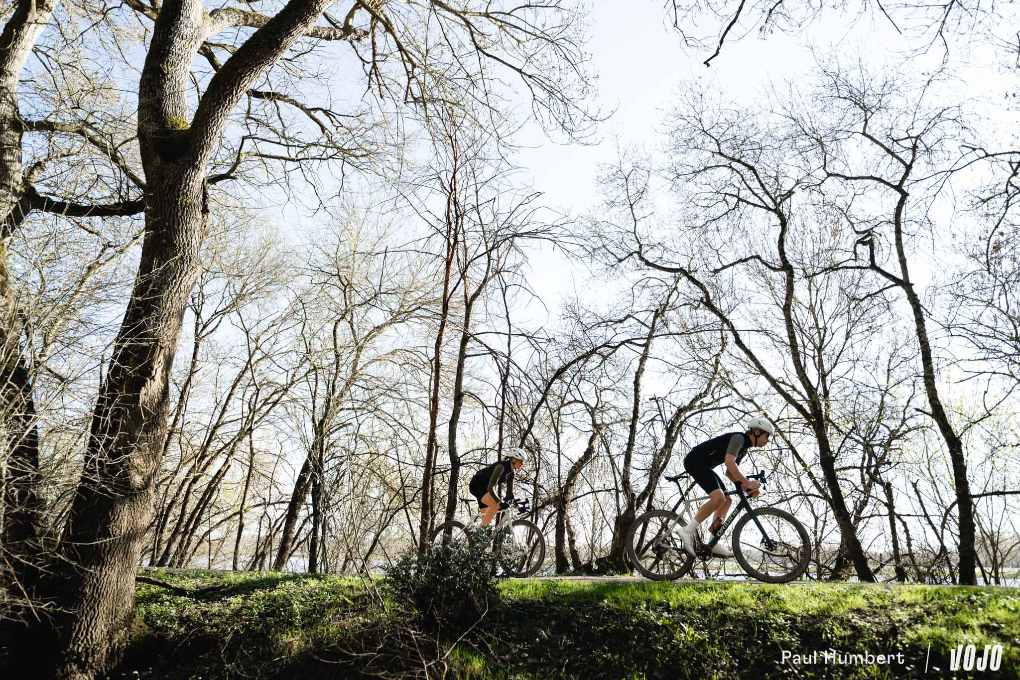 À la lisière des bois, avec des champs sur notre droite et une piste lisse aux reflets orangés, le coin aurait presque un petit air de Gérone, avec son réseau de chemins qui semble infini. On doit dire qu’avec une rédaction au cœur des Alpes, rouler en gravel sur un terrain où il s’épanouit, c’est un véritable plaisir au printemps.
