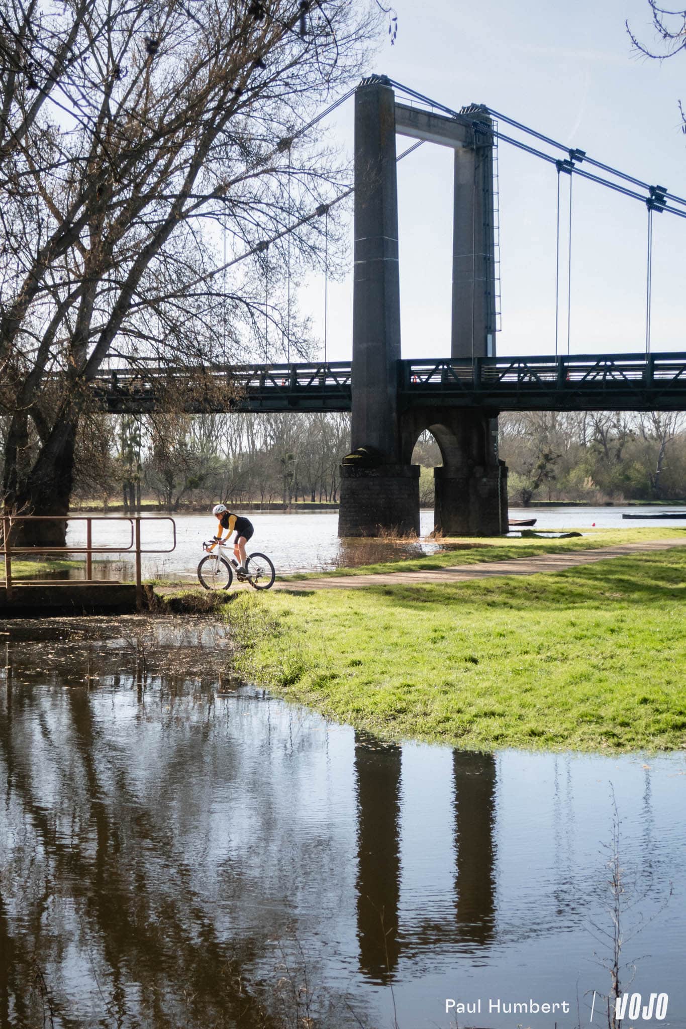 C’est juste à la sortie d’Angers que la trace prend son départ, sur les bords de la Maine. Pas de goudron pour s’élancer, on est déjà sur une voie verte en terre et on longe l’eau pendant les premiers kilomètres.