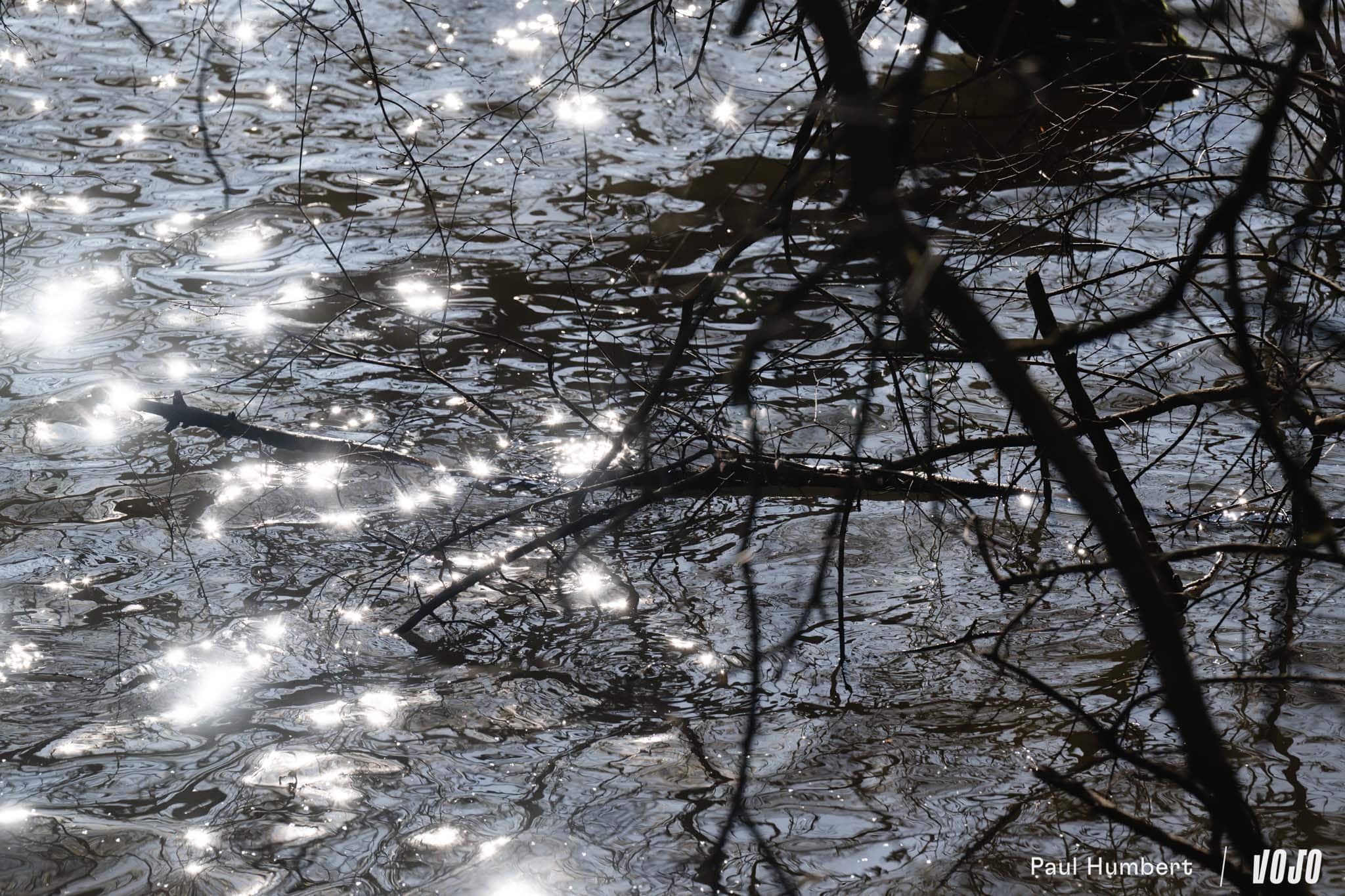 Dans un tunnel de végétation, on est éblouis par les reflets de l’eau frappée par le soleil de la matinée.