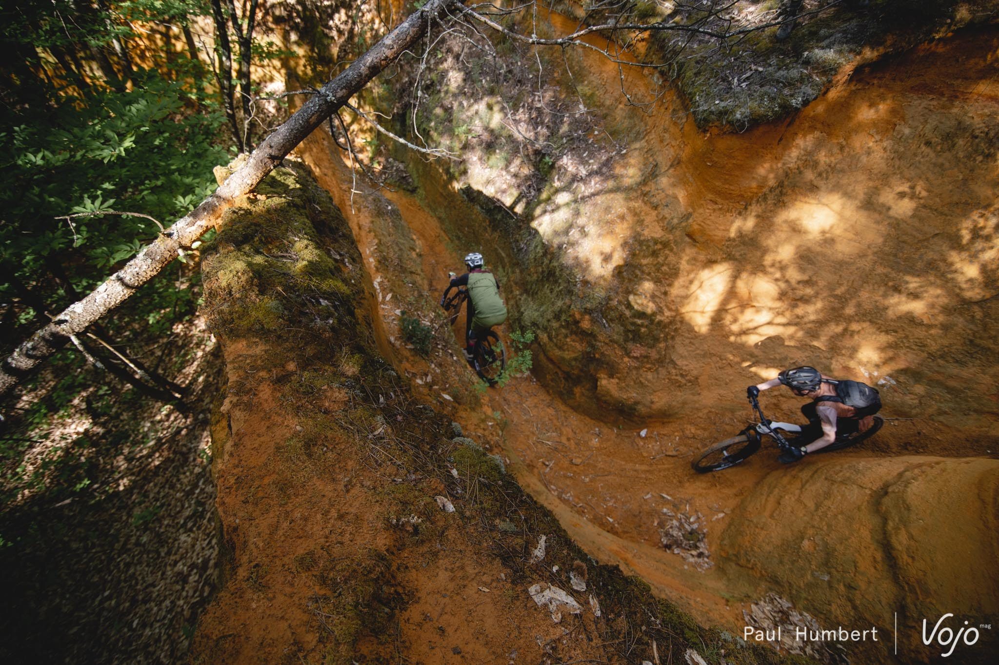 Le sol est incroyablement doux mais pas piégeux et c’est très agréable à rouler. Après quelques passages sur les crêtes, nous prenons la direction des anciennes mines d’ocres, de superbes tunnels qui s’étirent tout en longueur sous les sentiers.