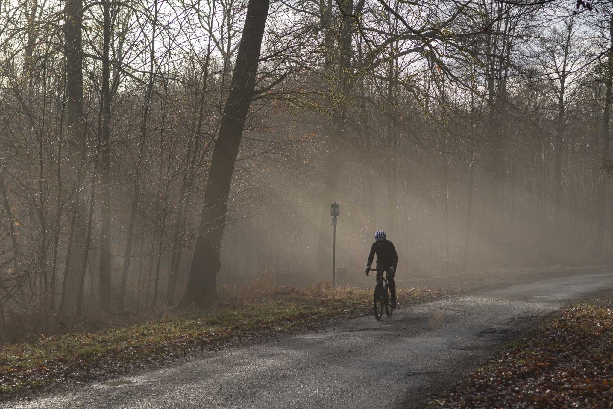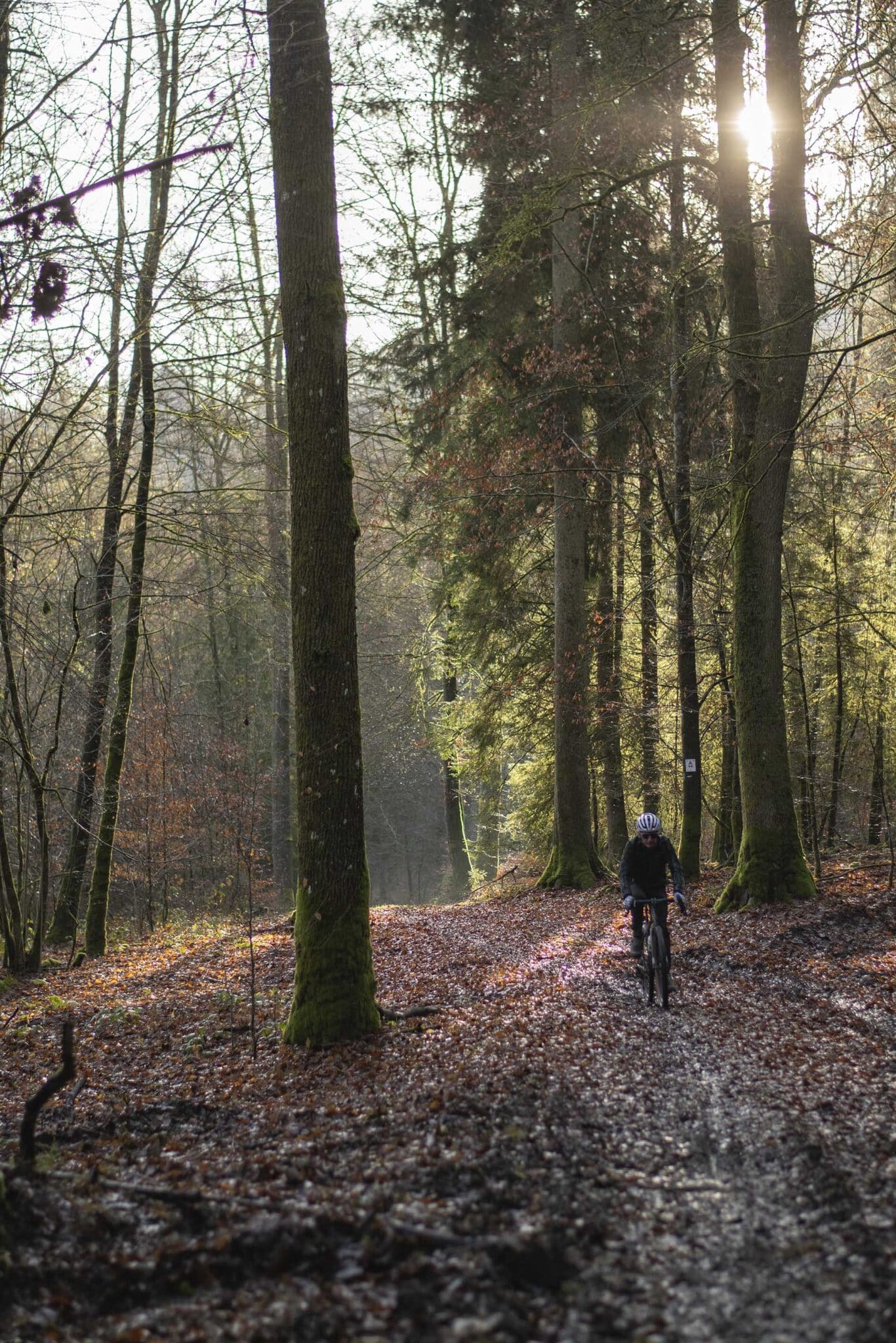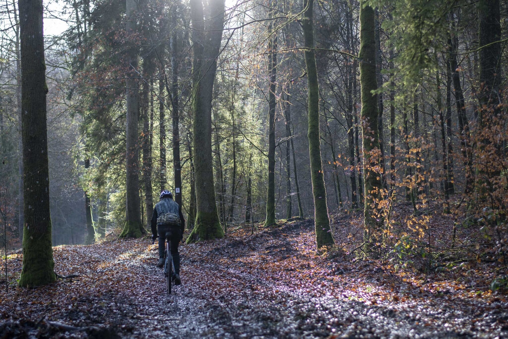 Sur les côtés, le sol n’est que labour : le sanglier, emblème et légende de l’Ardenne est passé par là. Au sommet, sur ce chemin parfaitement tracé, le bruit de crissement des plaquettes de frein se répercute dans tout le massif. Comme si nous étions gênés d’être là, nous évitons de trop freiner afin de ne pas déranger les hôtes : nous ne sommes que de passage.