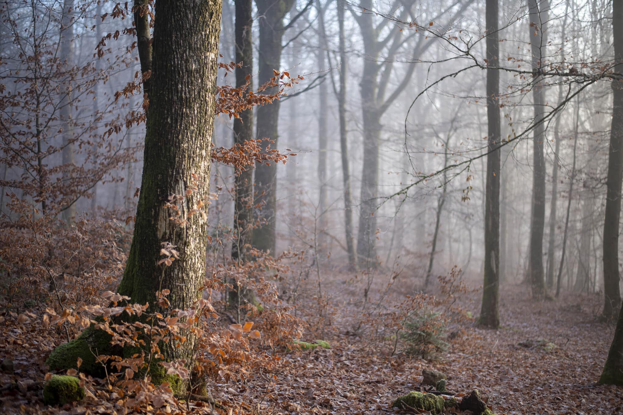 Les chemins sont imbibés d’eau mais le sol stable nous permet d’avancer rapidement au cœur de la forêt des Epioux. Elle nous mène dans un pays de lumière, la Gaume, réputée pour son ensoleillement. Elle nous le signale par cette forêt dotée de frênes, une essence qui apprécie le climat plus doux, comparé à celui, plus rude, des forêts du nord.