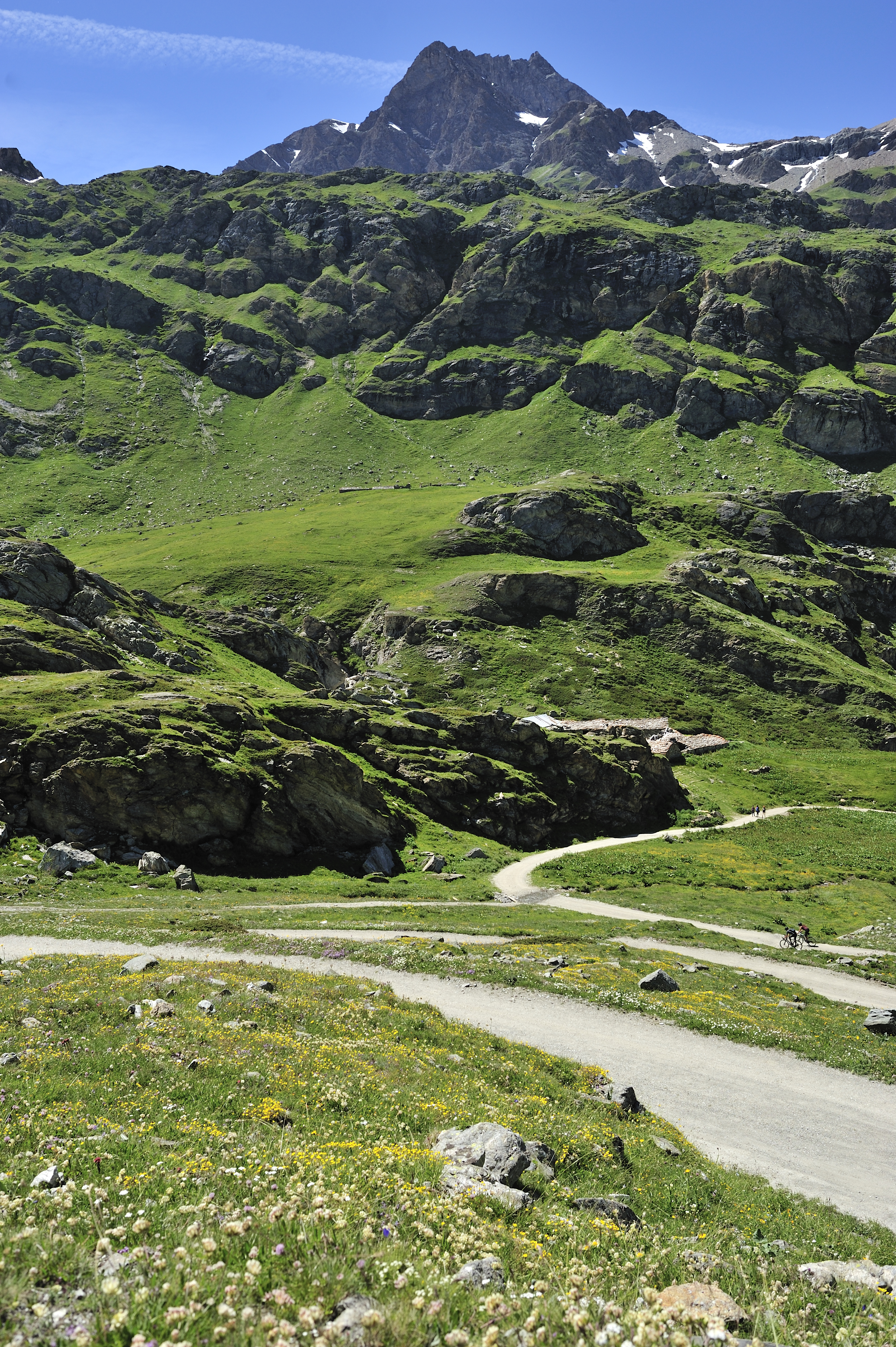 Nous poursuivons à vélo la vallée et la quittons en empruntant une piste carrossable menant vers les alpages.