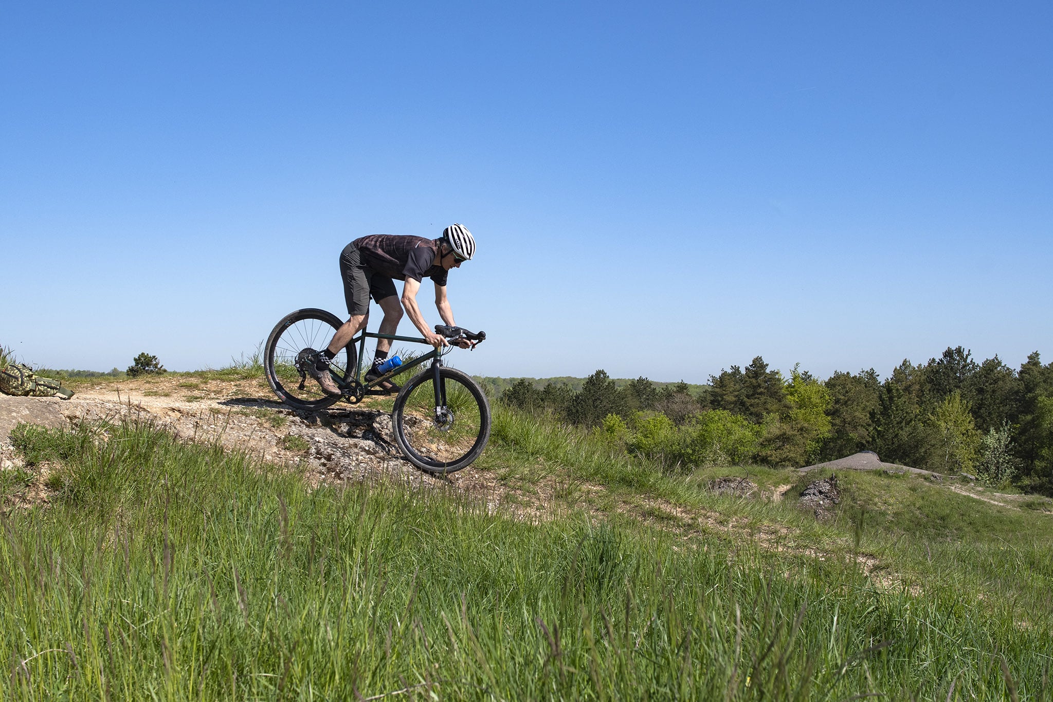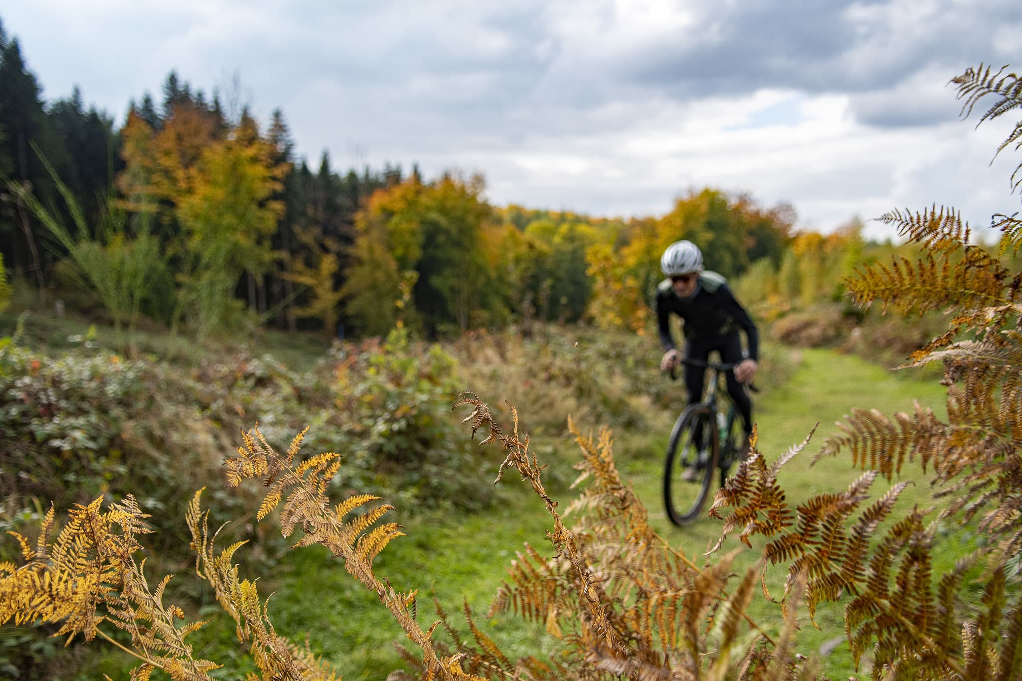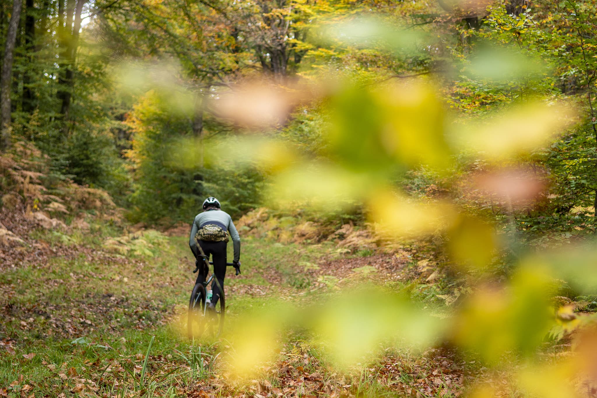 Le lendemain, nous posons nos roues dans le sud de la région, du côté de Saint-Mihiel. Depuis les rives de la Meuse, Nicolas Martin nous guide vers une forêt dont nous sentons les premiers parfums de cette superbe journée de printemps. Dans la forêt de Gaumont, nos gravel suivent un large chemin offrant ici et là un beau panorama vers le lac de Madine.