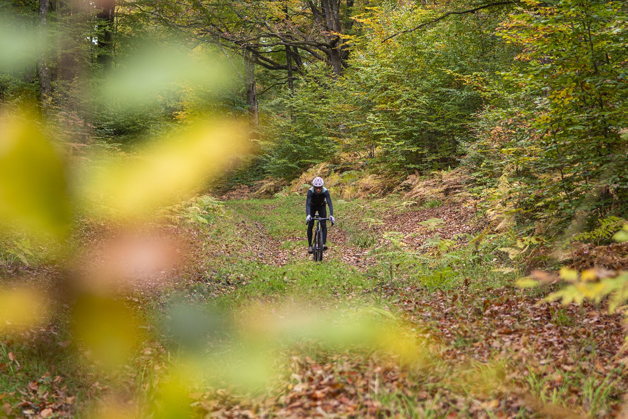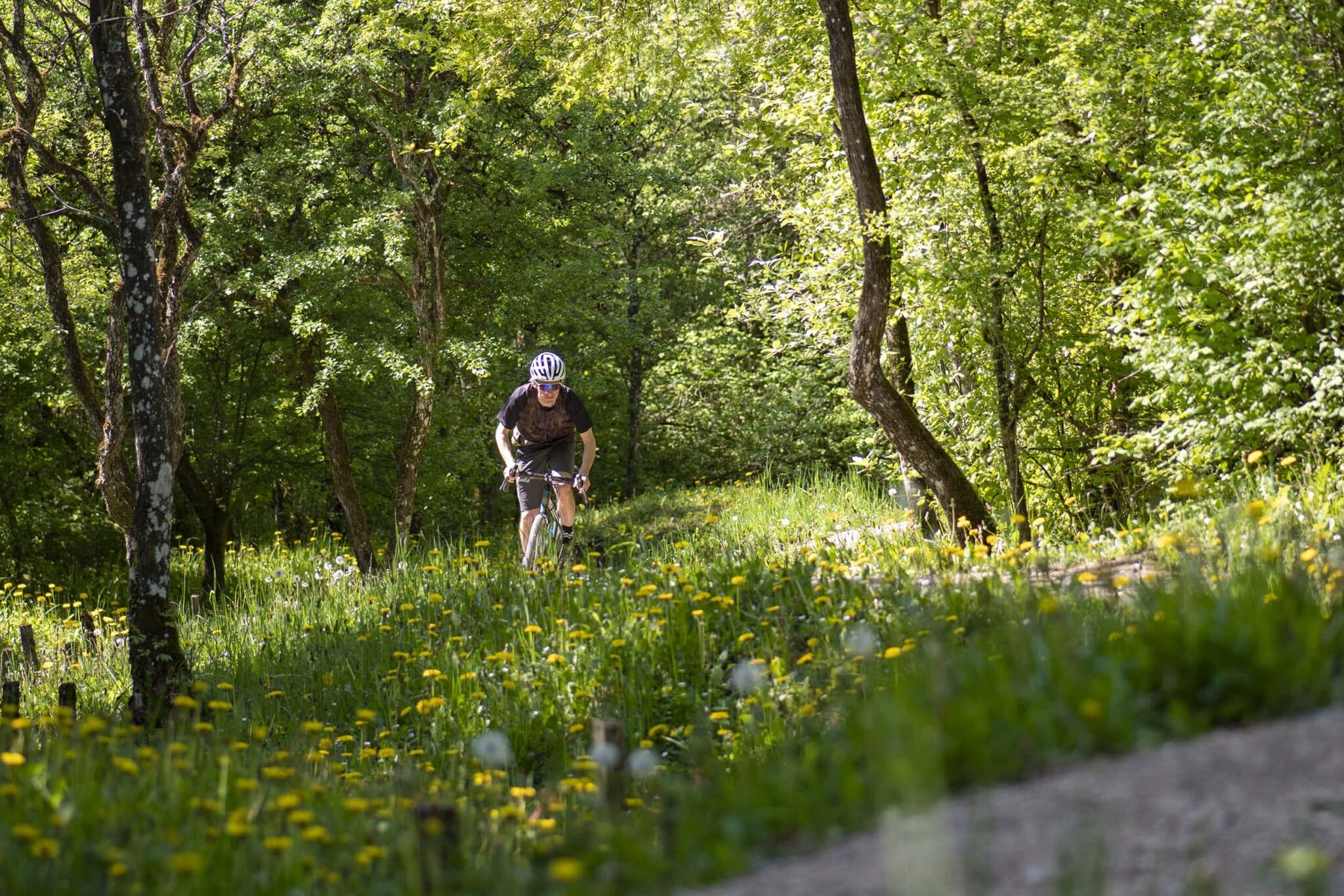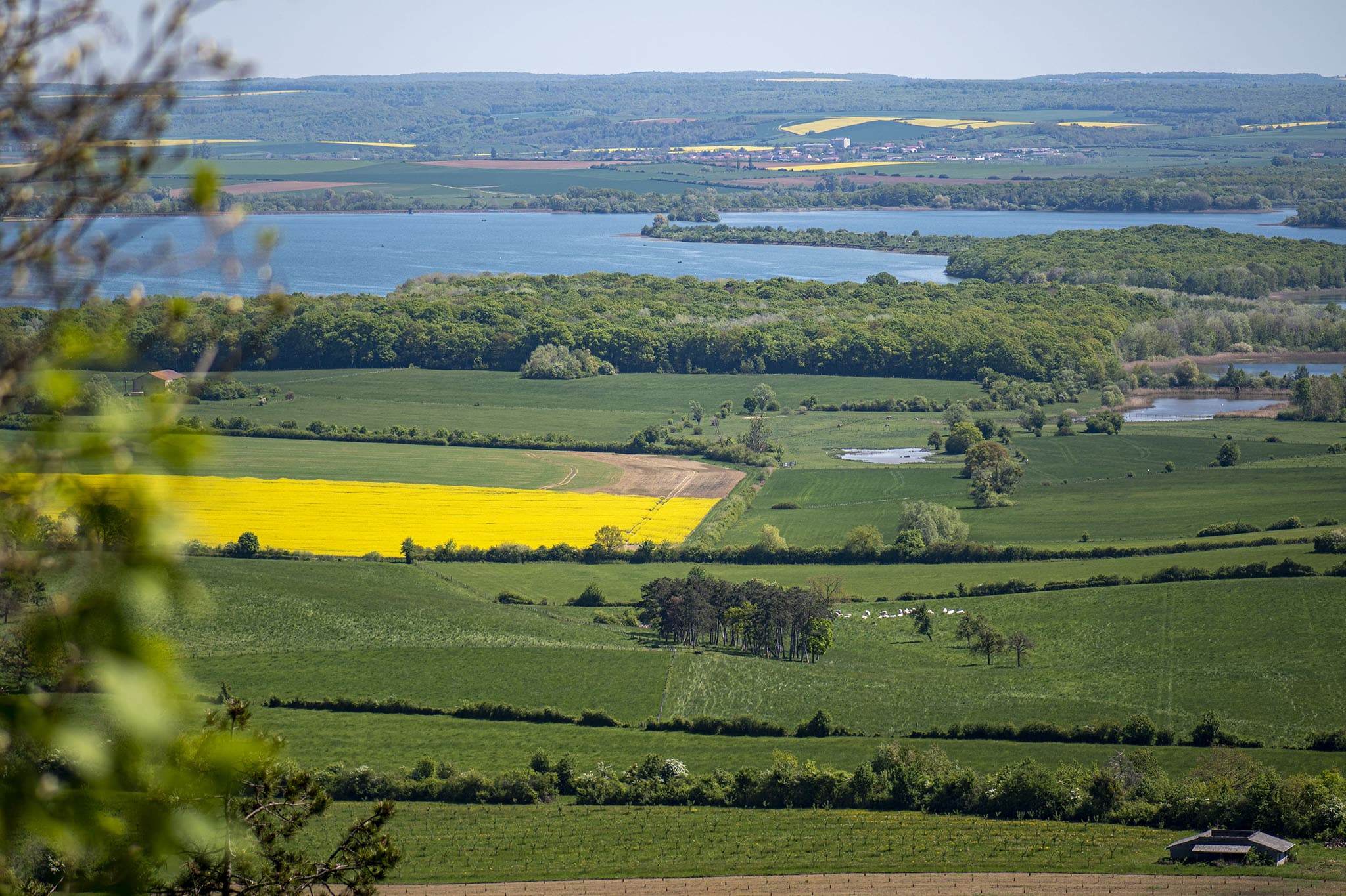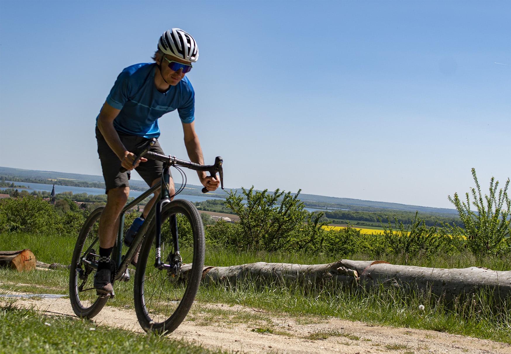 Le lendemain, nous posons nos roues dans le sud de la région, du côté de Saint-Mihiel. Depuis les rives de la Meuse, Nicolas Martin nous guide vers une forêt dont nous sentons les premiers parfums de cette superbe journée de printemps. Dans la forêt de Gaumont, nos gravel suivent un large chemin offrant ici et là un beau panorama vers le lac de Madine.