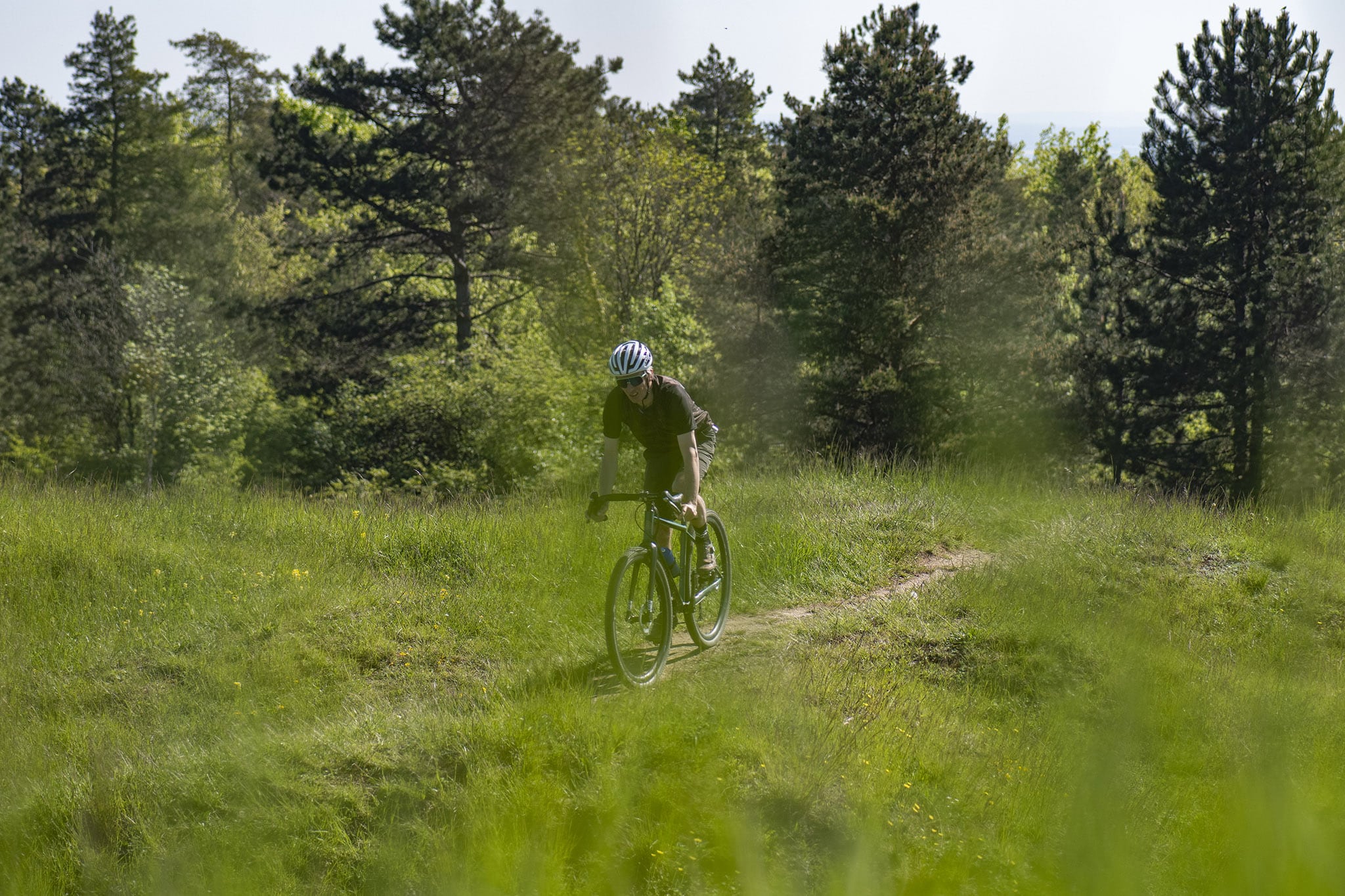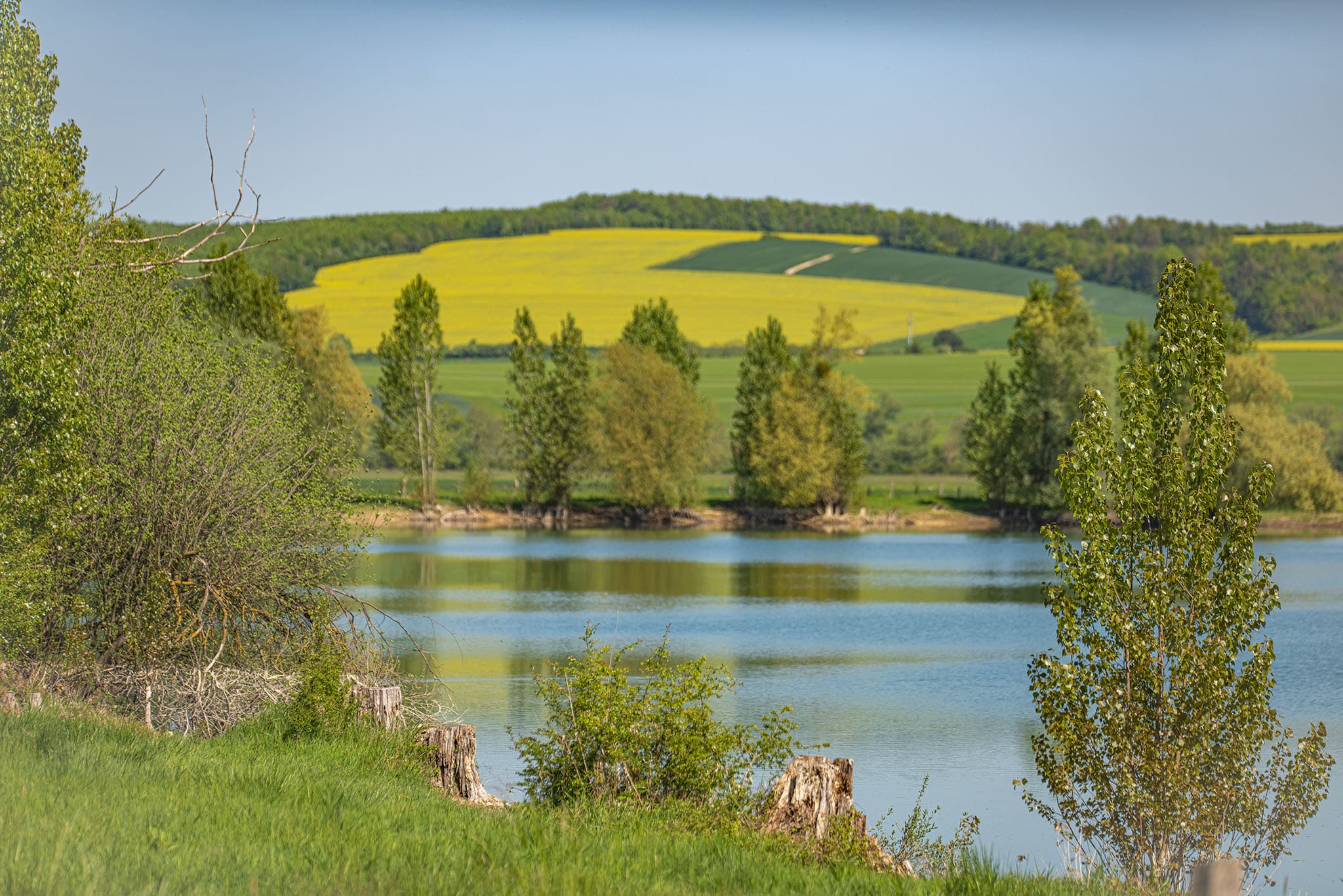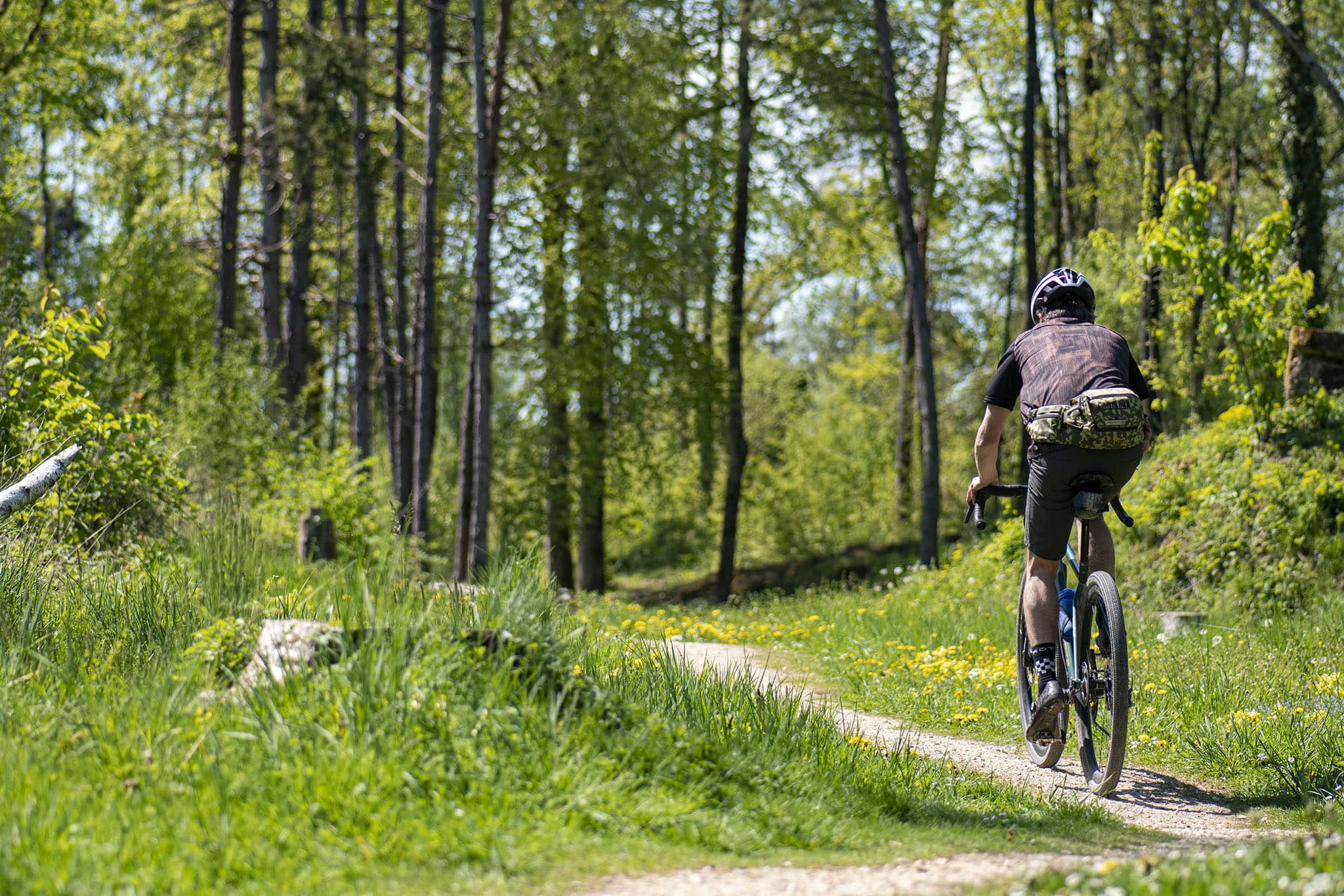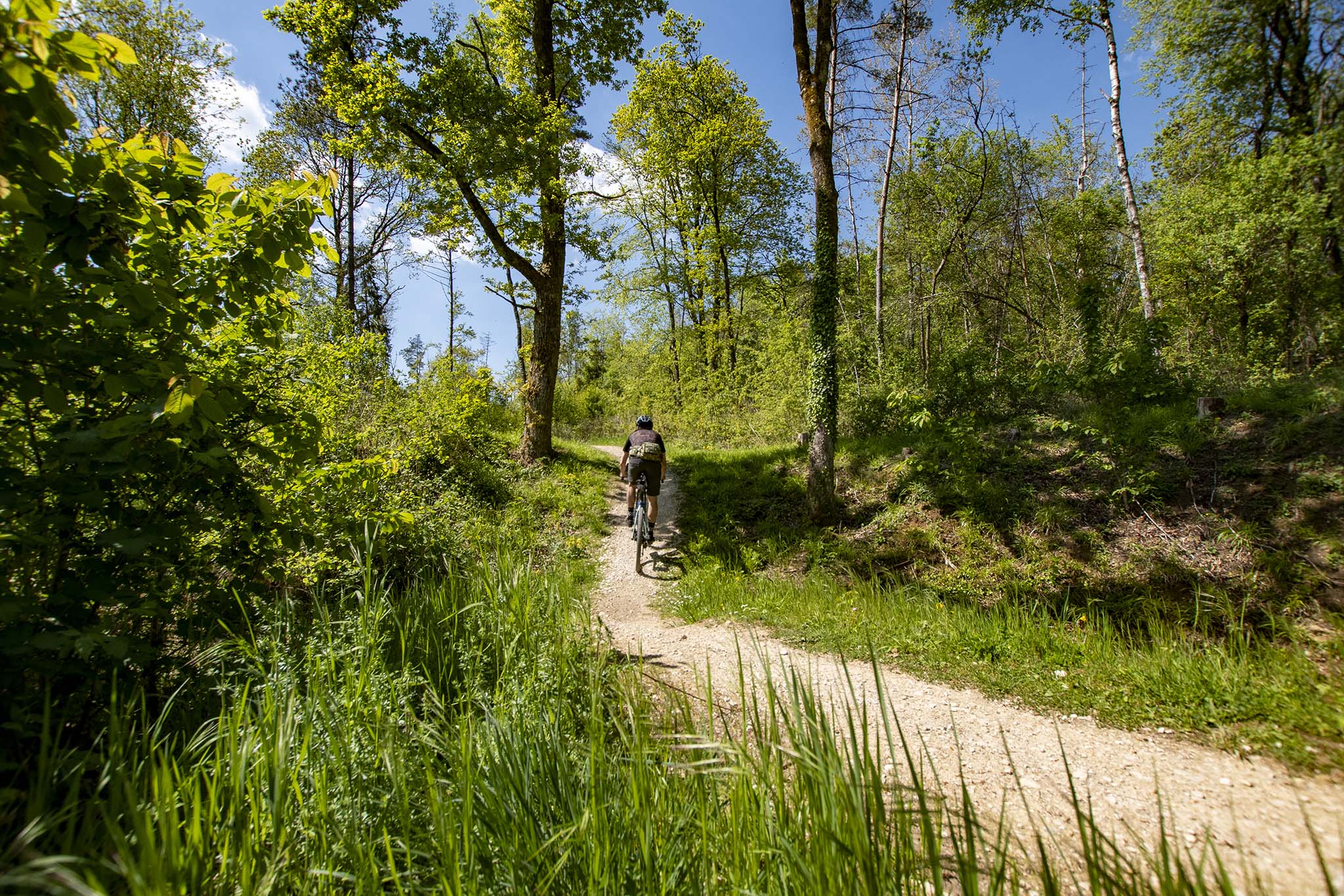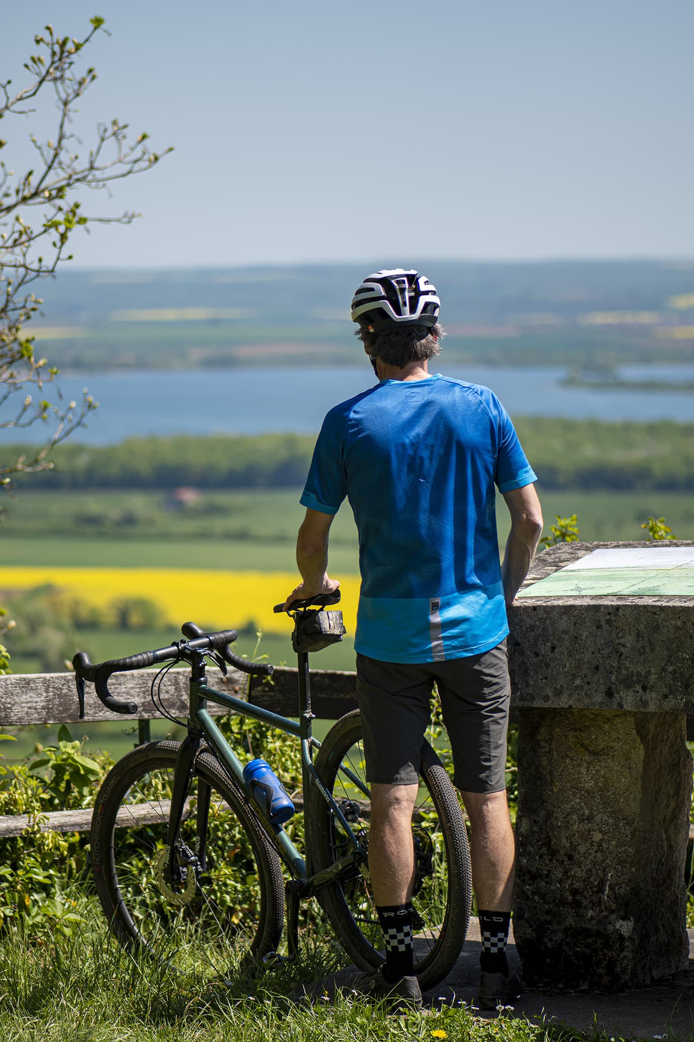 Le lendemain, nous posons nos roues dans le sud de la région, du côté de Saint-Mihiel. Depuis les rives de la Meuse, Nicolas Martin nous guide vers une forêt dont nous sentons les premiers parfums de cette superbe journée de printemps. Dans la forêt de Gaumont, nos gravel suivent un large chemin offrant ici et là un beau panorama vers le lac de Madine.