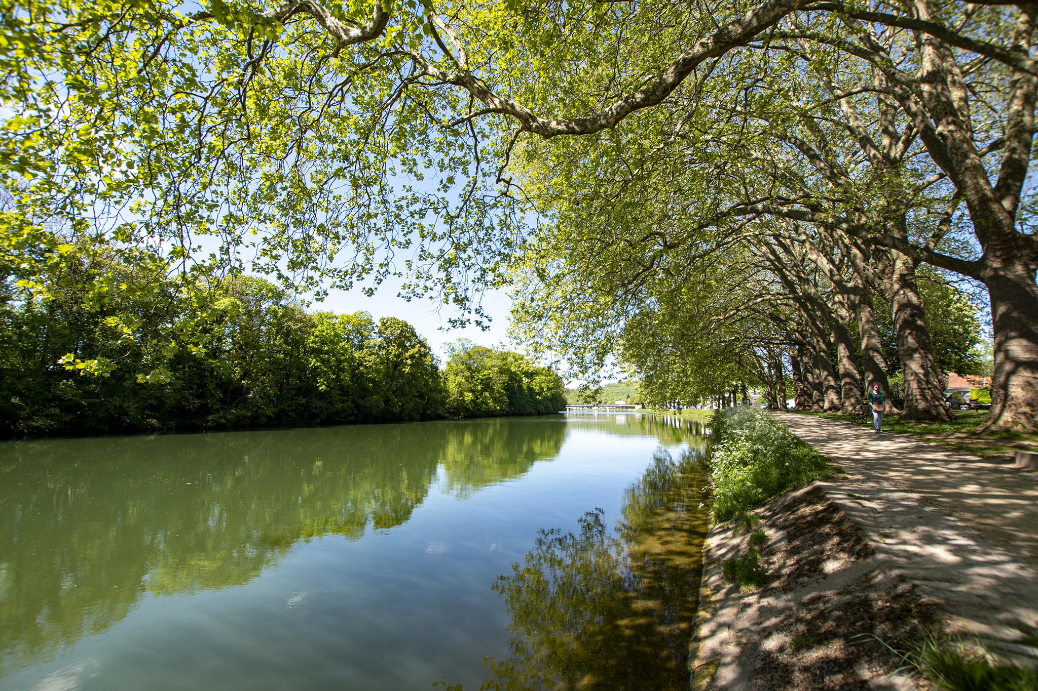 Maintenant, la descente se faufile entre les champs de colza et traverse une belle prairie. La balade aboutit à Verdun. À une Meuse reluisante se marie un ciel bleu azur. La cité au XXIe siècle se pare de beaux atouts.