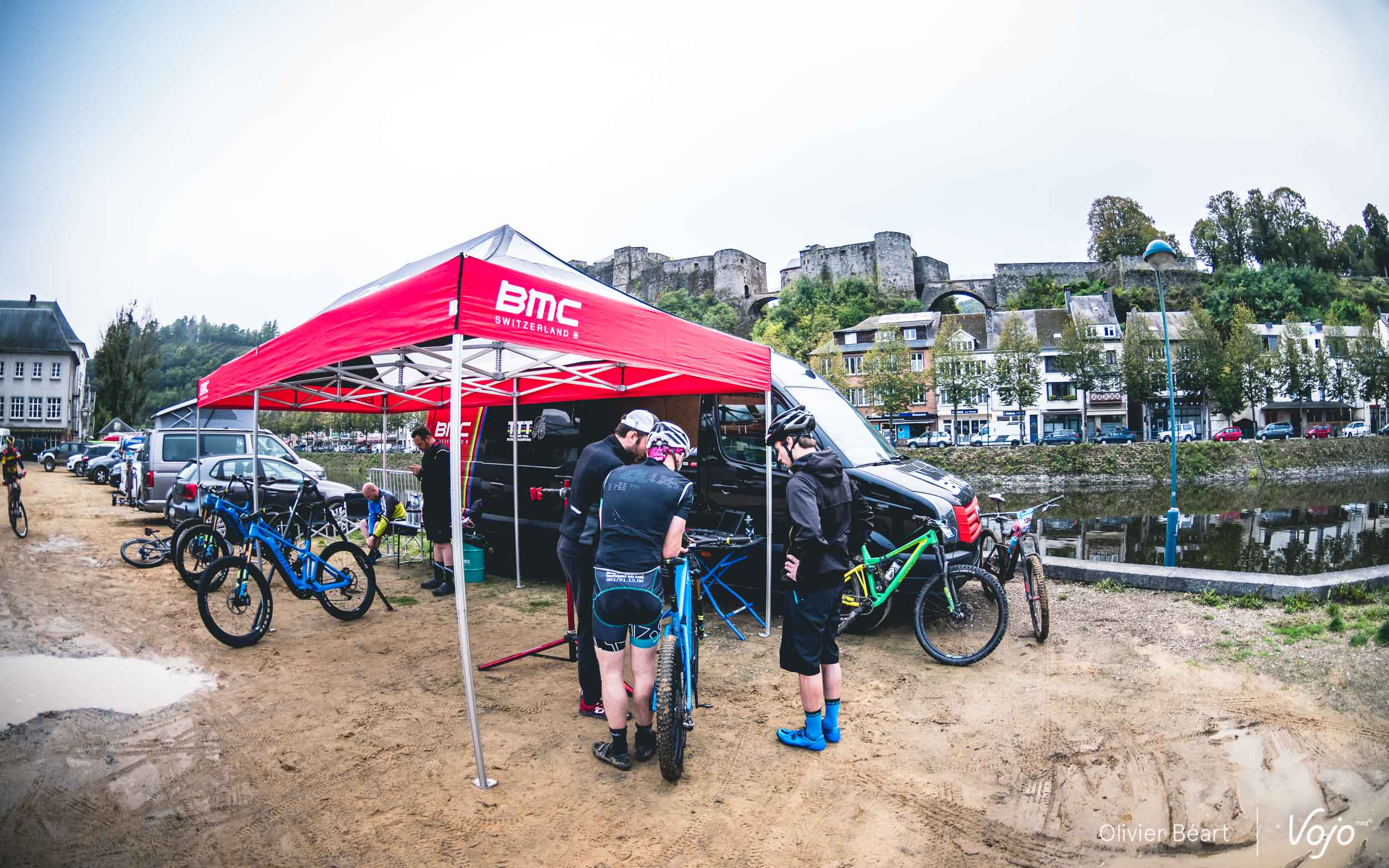 C’est à Bouillon, à l’occasion du Grand Raid Godefroy, que nous avons eu l’occasion d’inviter 4 de nos lecteurs à une prise en main du BMC Trailfox AMP. Pourquoi là ? Tout simplement car le GRG a été pionnier dans l’organisation d’épreuves dédiées au vélo électrique, avec le GRG e-bike qui en était cette année déjà à sa 3e édition. Ce n’était pas une condition sine qua non, mais les 4 vainqueurs de notre concours étaient justement des novices complets au niveau vtt à assistance électrique.