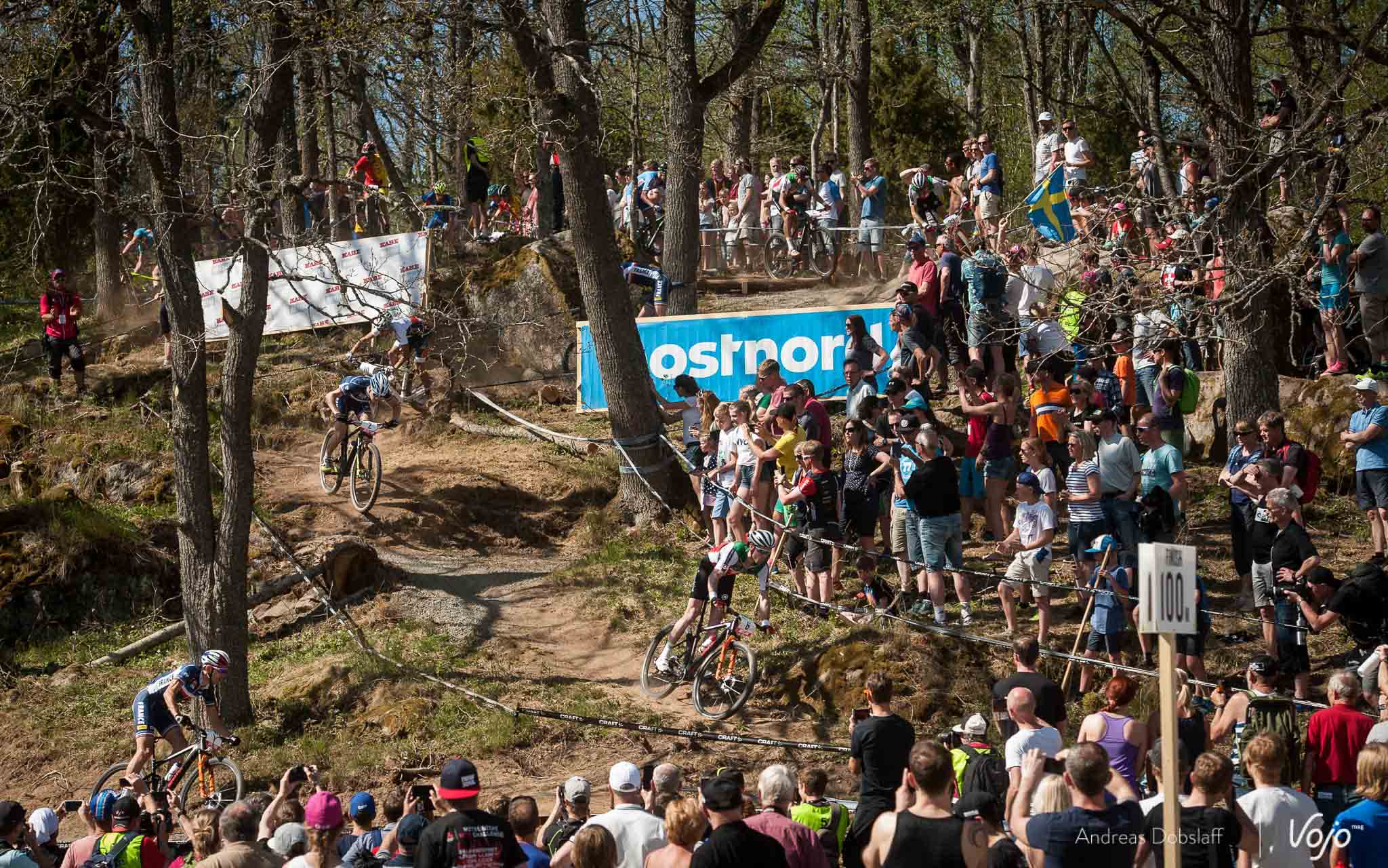 Au-dessus du lot dans les ascensions, Julien Absalon s’est aussi montré d’une grande aisance en descente. Il était un des rares à avoir fait le choix d’un full sur le tracé suédois. Et toujours avec une tige de selle télescopique !