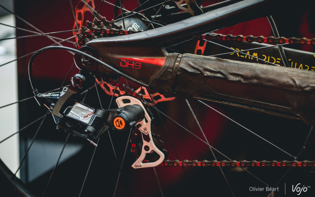 Sur le nouveau groupe Box Two, on retrouve donc désormais une commande plus traditionnelle à deux leviers. Le dérailleur a aussi été légèrement modifié avec un ressort de rappel renforcé et un galet inférieur de plus grande taille monté sur roulements.