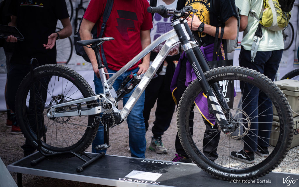 Les vélos de DH se font rares sur les salons, mais nous avons repéré sur le stand de Manitou ce Gamux Sego vraiment impressionnant avec son cadre usiné CNC et sa boîte de vitesses. Testé en coupe du monde à l’état de prototype en 2021, il est désormais entré en production.