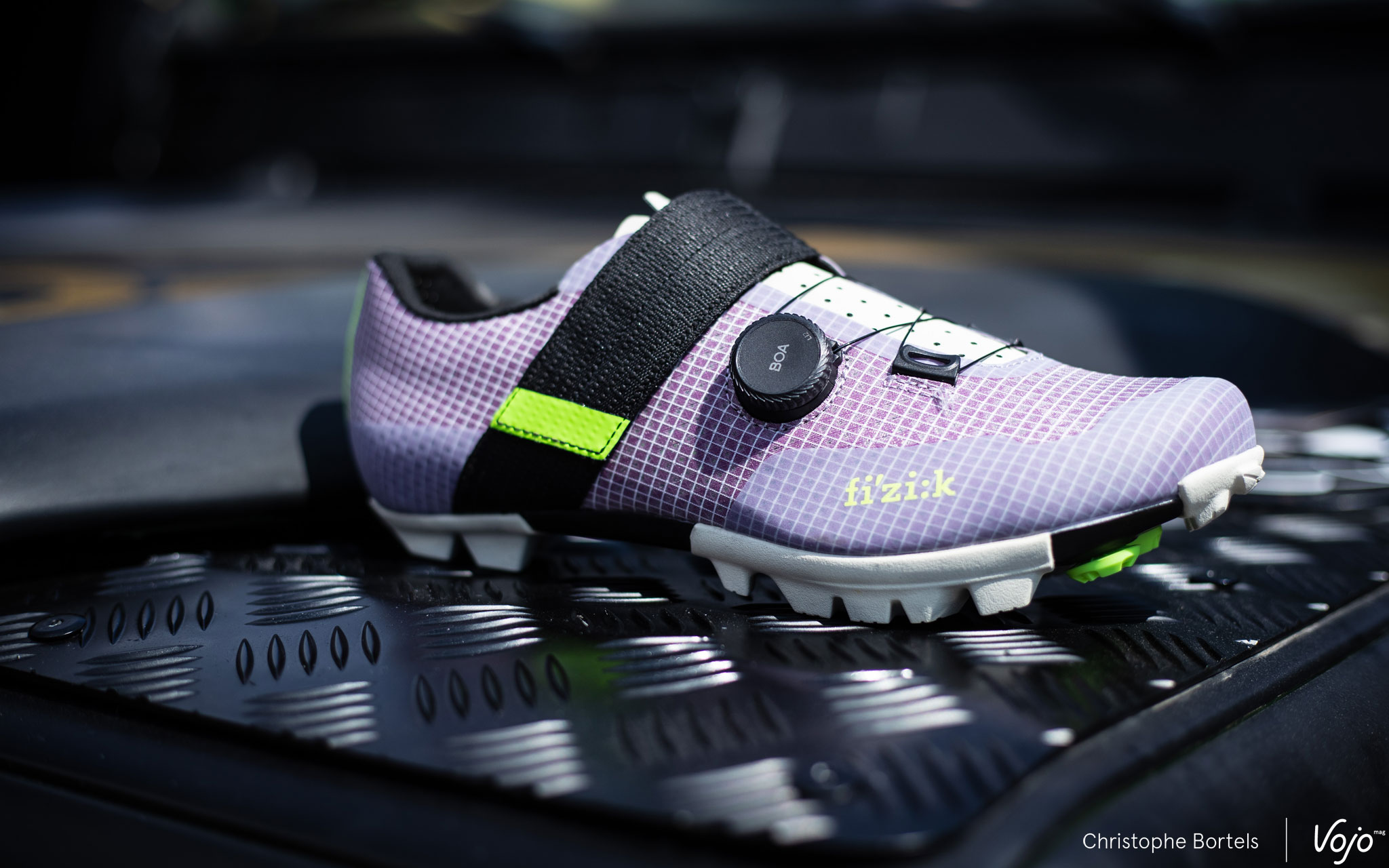 La Vento Ferox Carbon de Fizik ne peut pas laisser indifférent. Comme son nom le laisse deviner, elle bénéficie d’une semelle en carbone, particulièrement rigide. Mais c’est surtout par sa construction en maille très technique et translucide particulièrement résistante aux déchirures qu’elle se distingue. Prix : 299€.