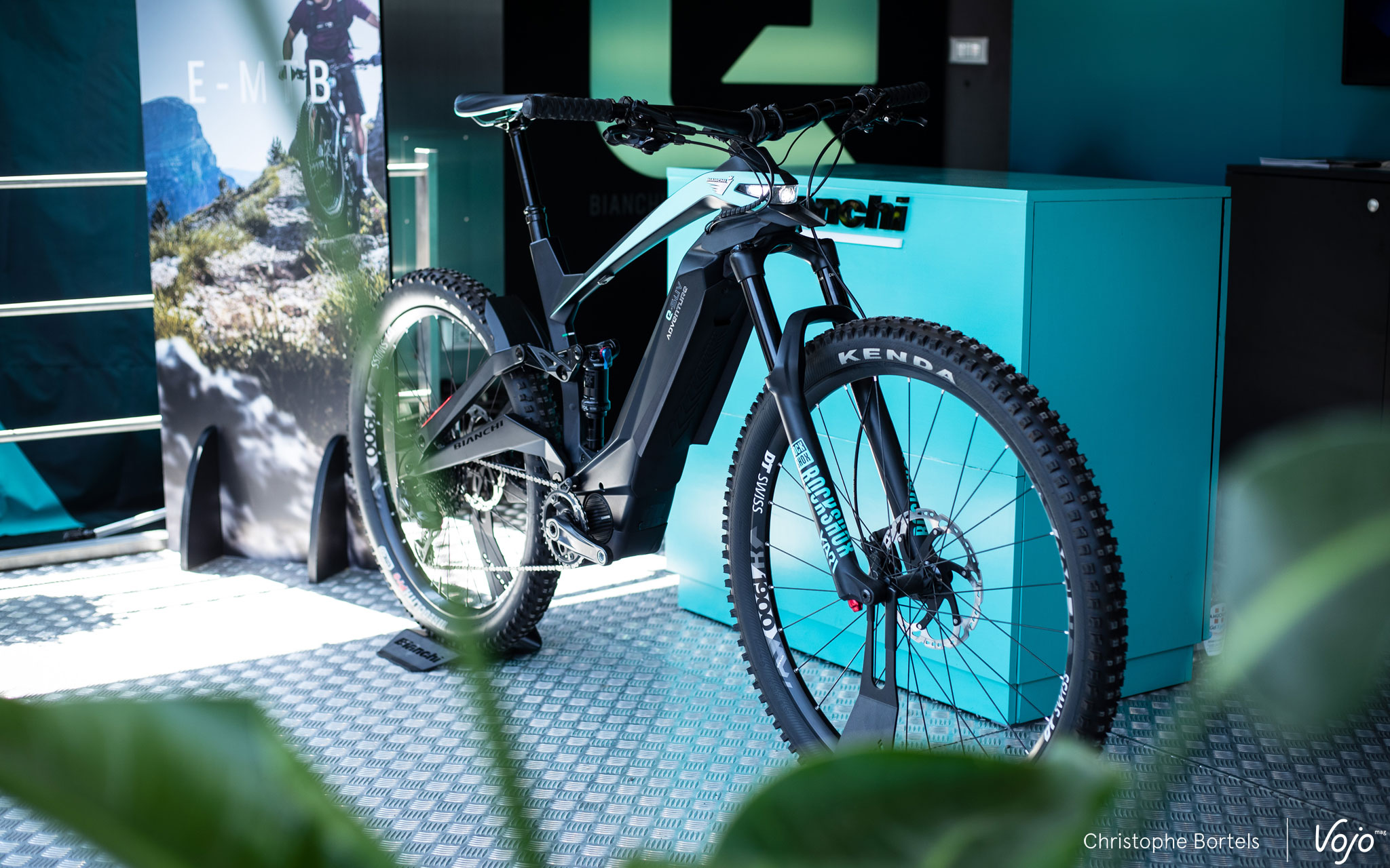 Passage obligatoire par le stand du constructeur allemand Alutech, où on pouvait notamment admirer le Fanes, leur modèle enduro, ici décliné en mulet et équipé de suspensions Intend.