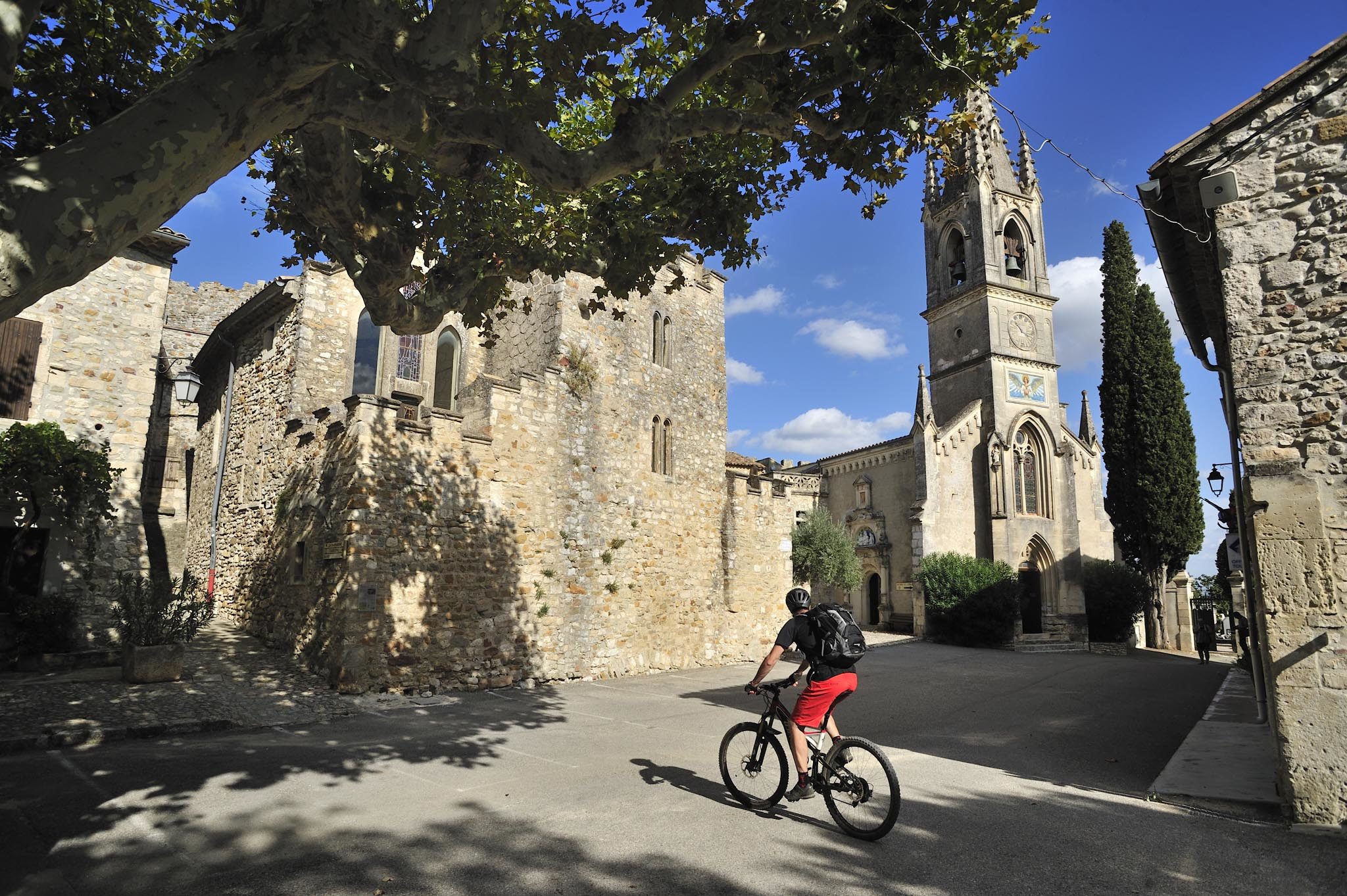 A l’approche du village classé d’Aigueze, la trace se durcit, s’engage sur une crête aérienne. Les gorges vertigineuses, à quelques mètres de nos roues, offrent enfin un panorama sur la rivière.