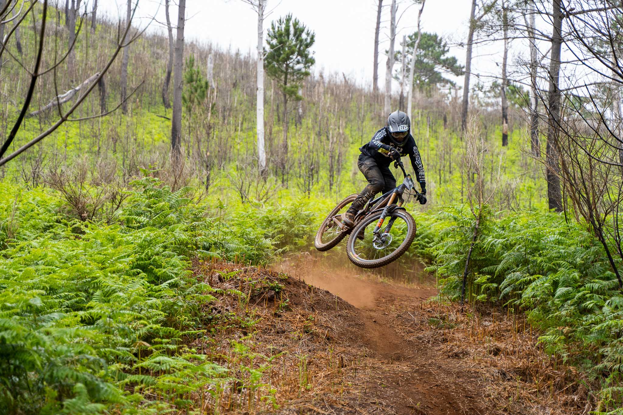 Habituellement, quand on descend plus bas, ça devient plus sec, mais malheureusement il pleut un peu aujourd’hui et les pistes restent glissantes, mais toujours amusantes. La pluie reste modérée mais ce n’est pas forcément mieux, la boue n’est pas très liquide et a tendance à rester coincée dans les pneus, ce qui engendre quelques glissades et figures de style pas toujours très contrôlées !