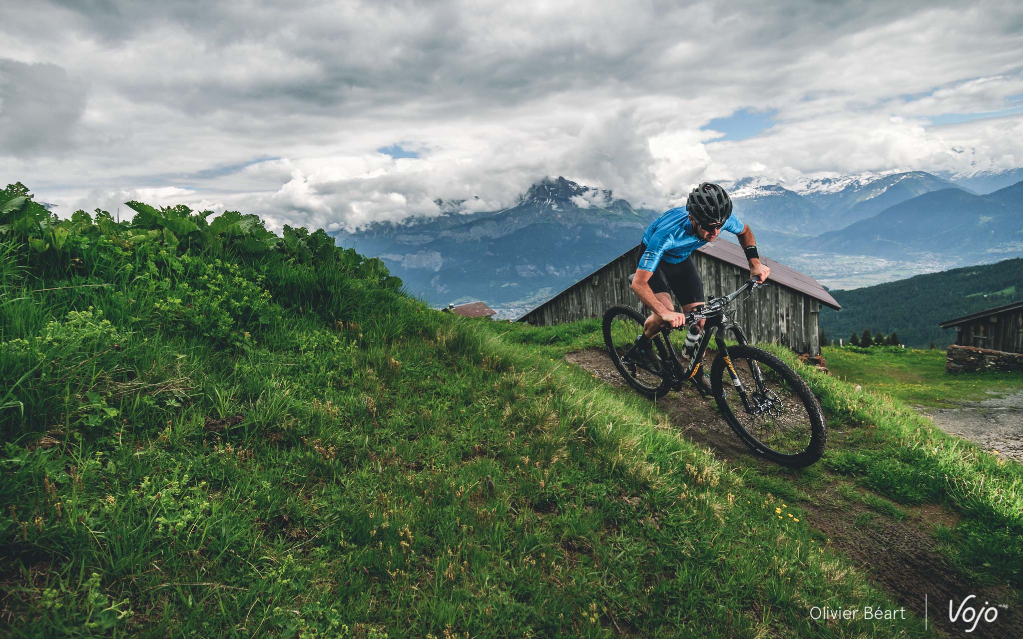 Alors qu’on reprend tous un peu notre souffle, le panorama est trop beau pour louper l’occasion de faire une petite séance photo d’action sur un petit singletrack d’altitude bien sympa. Ca, ça sent la photo de cover pour les réseaux sociaux !