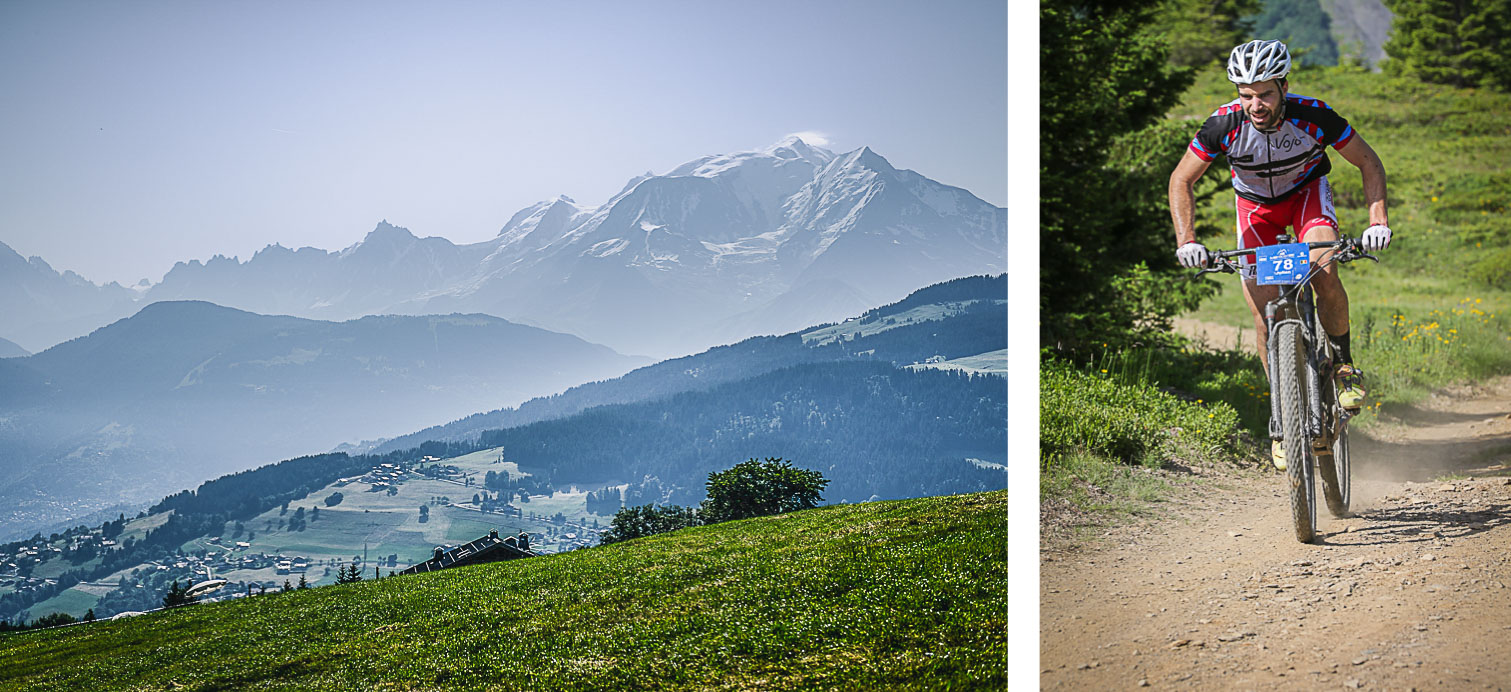A la moitié de cette longue ascension, on profite du ravitaillement du Gâteau (ça ne s’invente pas). Son emplacement est stratégique car les bidons sont pratiquement vides et la plupart des concurrents s’y arrêtent pour faire le plein. Une fois passé la tête de la Torraz, le tracé nous balade sur la crête du Bonjournal, une succession de 4 coups de cul à la limite du roulable, et le dernier se négocie obligatoirement en poussant le vélo. Une fois le col du Jaillet atteint, nous plongeons sur Combloux via la piste d’enduro/DH du bike park. Un pur régal, mais qui nécessite de rester attentif, d’autant que le final comporte quelques portions droites très rapides qui mettent les freins à rude épreuve.