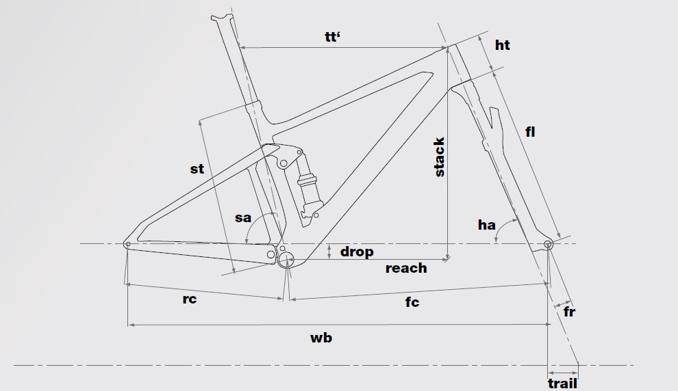 Pas de nouveautés en ce qui concerne le cadre mais tout de même des évolutions sur la géométrie, la faute au débattement plus important qui modifie certains angles et longueurs « virtuelles ». Ainsi, l’angle de tube de selle descend à 74,8° et celui de la direction passe à 66,5°, contre 75,6° et 67,5° sur le Fourstroke non-LT. De son côté, le reach est raccourci de 5 à 9 mm tandis que le boîtier de pédalier remonte de 9 mm.