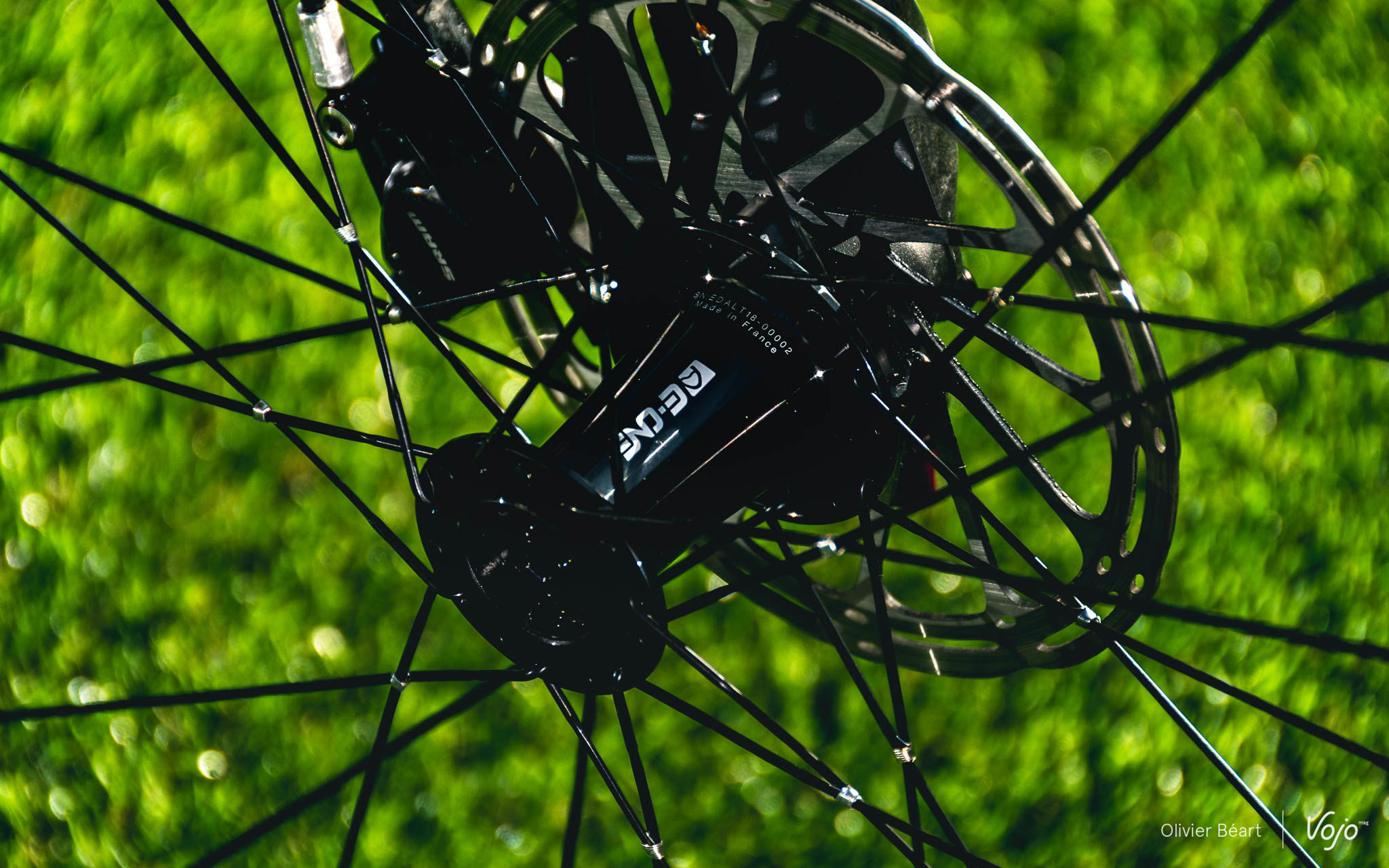 Au niveau des autres composants, les roues Asterion E-One XCR utilisent une version spécifique allégée des moyeux Aivee Edition One SL. L’axe est allégé et le petit cylindre qui sert de butée aux roulements du corps de roue-libre est ajouré. Enfin, l’ensemble joint torique/bague en alu qui assure l’étanchéité entre le moyeu et la roue-libre est remplacé par une bague en Teflon de haute qualité usinée (une solution qu’on retrouve sur les moyeux Aivee MT6 et qui ajoute aussi de la fluidité). Enfin, les roulements sont en céramique et il existe une version Lefty pour l’avant.