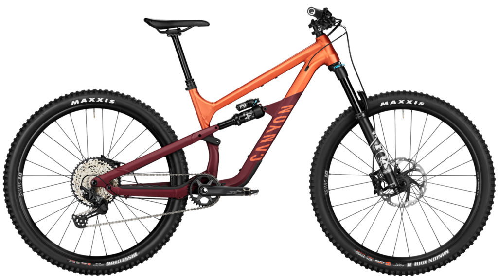 On a vu plus léger sur le même segment mais Canyon n’a pas fait dans la demi-mesure pour l’équipement : freins 4 pistons pour tout le monde (Shimano Deore/SLX/Deore XT ou Sram Code RS/Code RSC), disque de 200 ou 203 mm à l’avant et grosse fourche, avec une Fox 36 pour trois des cinq modèles. Voilà qui promet !