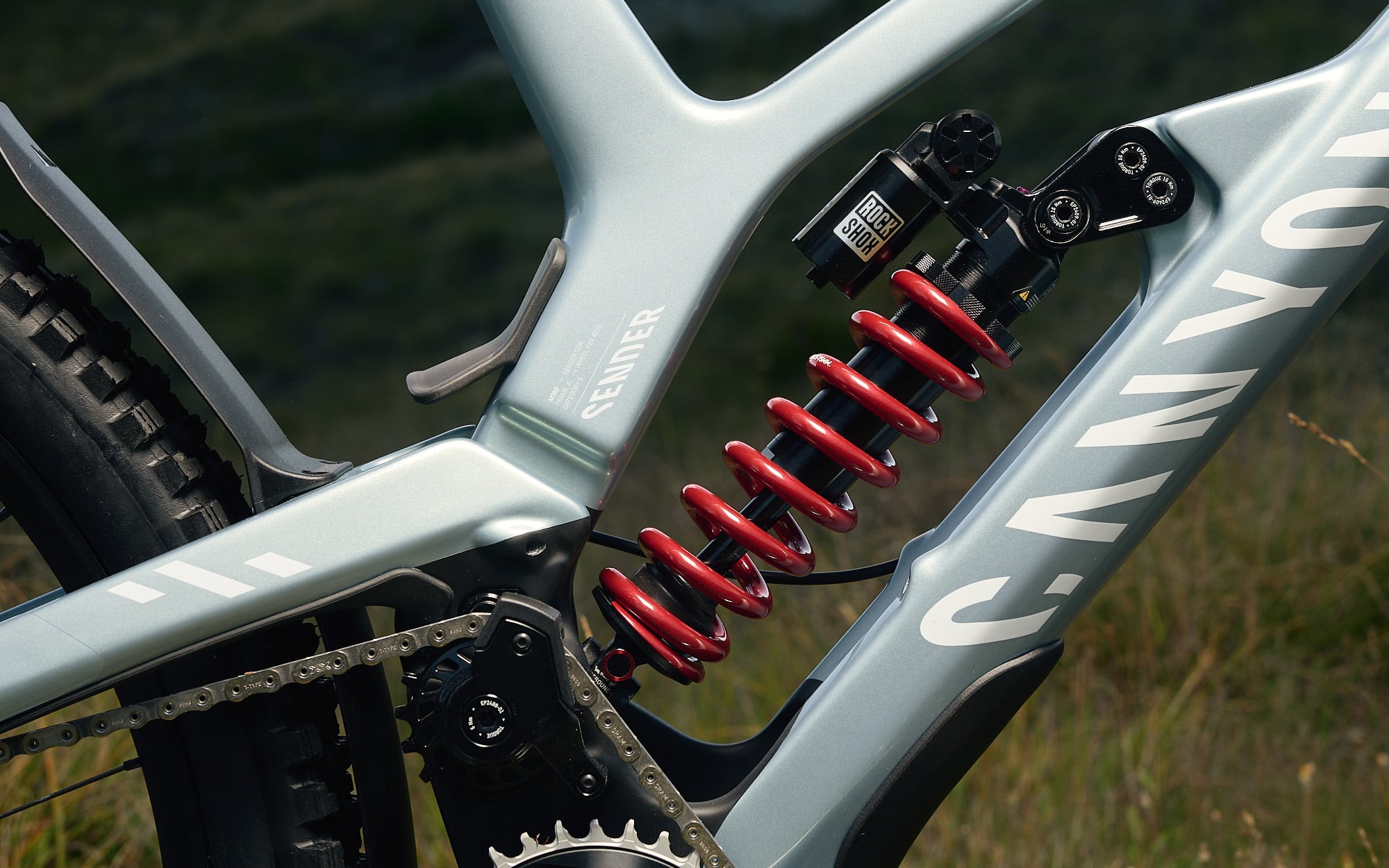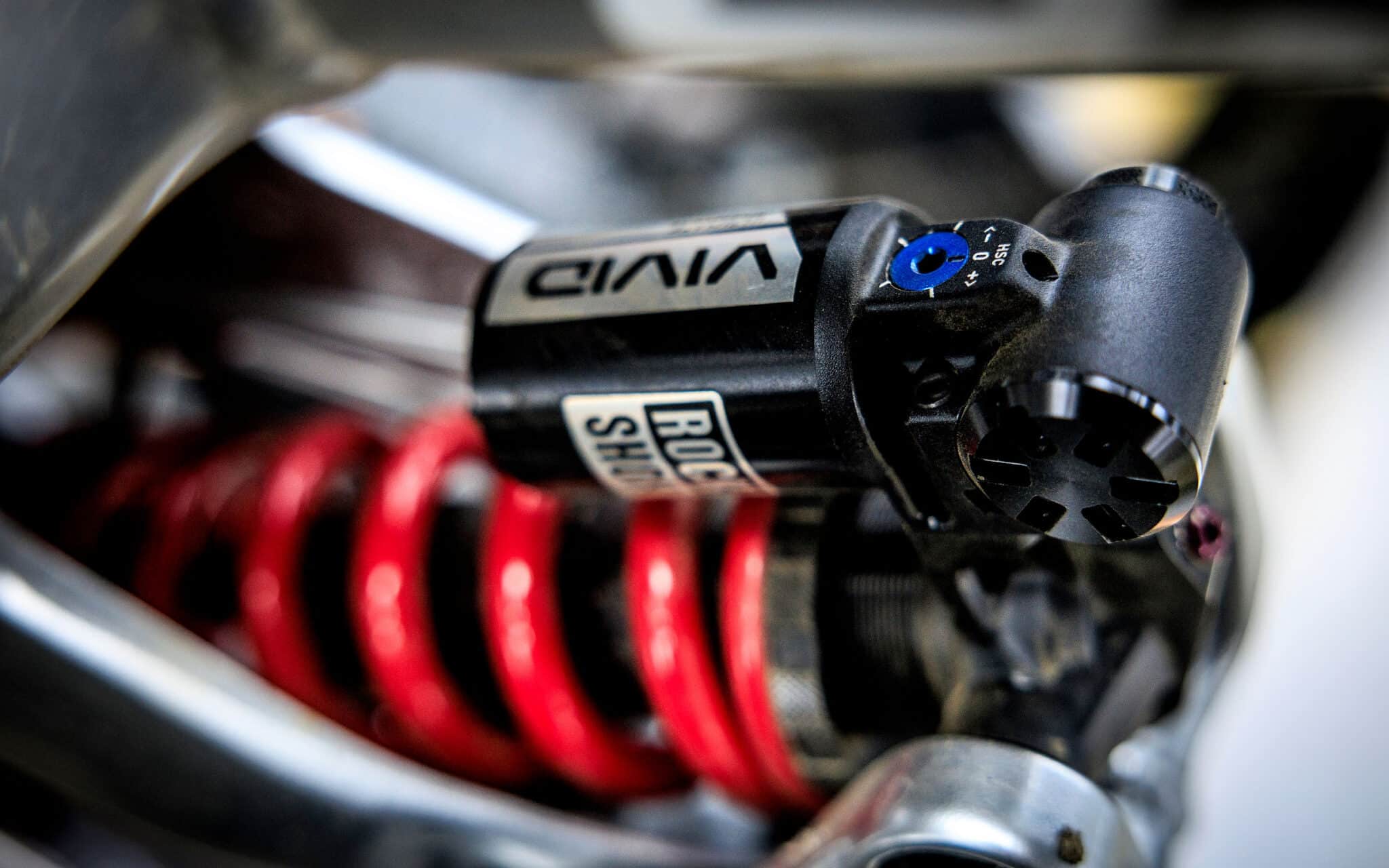 À l’arrière, le RockShox Vivid Coil Ultimate RC2T est annoncé à 785 €, ressort vendu séparément. Son concurrent direct chez Fox (DHX2) se place au-dessus niveau tarif (910 €).