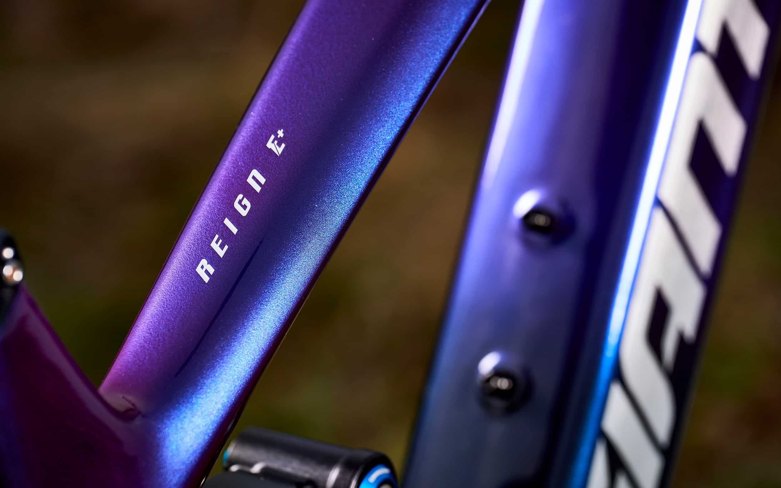 Le cadre de cette nouvelle génération de Reign Advanced E+ est fabriqué en carbone, à savoir le layup Advanced Composite propre à la marque. Giant annonce « légèreté, rigidité et robustesse, permettant un gain de poids de 25 % par rapport au modèle en aluminium (en taille M) ».
