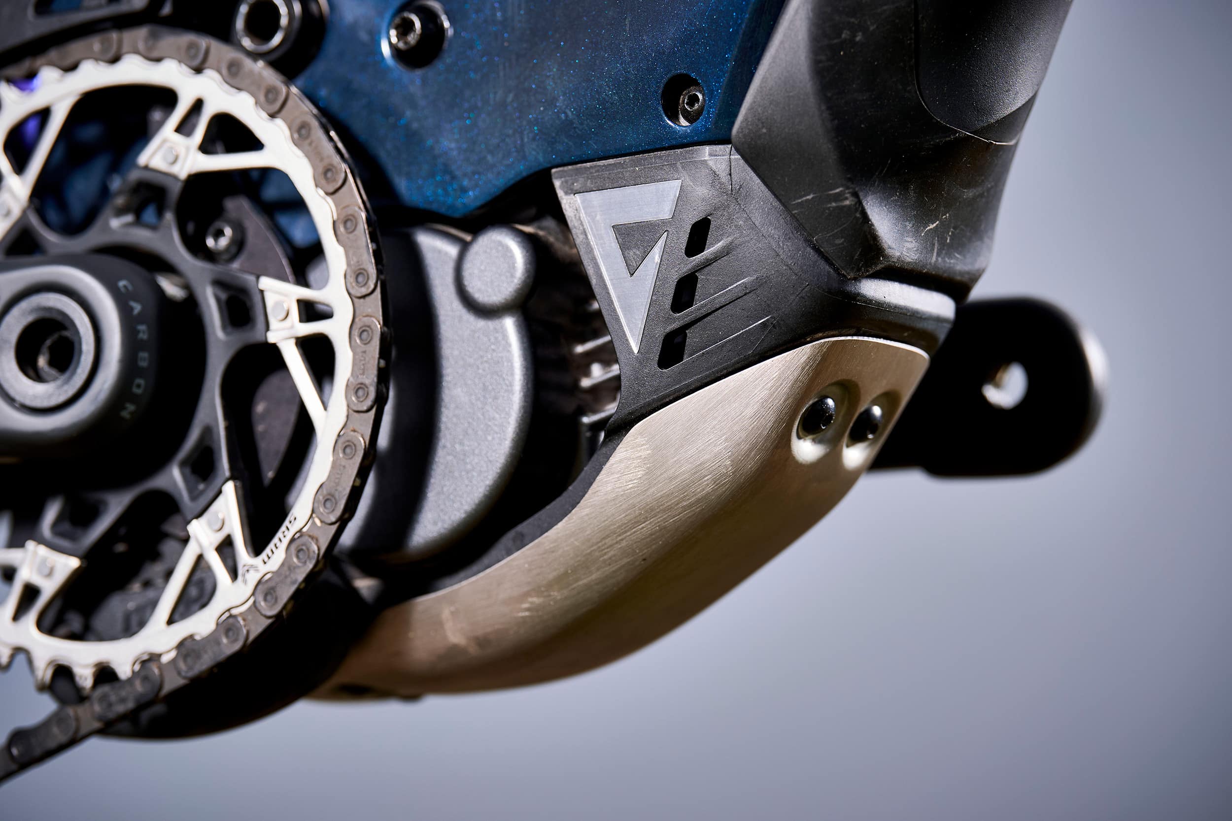 Le moteur, lui, est abrité derrière un carter en titane remplaçable, un matériau choisi autant pour sa résistance que pour sa durabilité. « Deux fois plus solide que l’aluminium, insensible à la corrosion et doté d’un faible coefficient de friction, il limite les risques d’accrochage en cas de contact avec un rocher ou une racine », explique la marque.