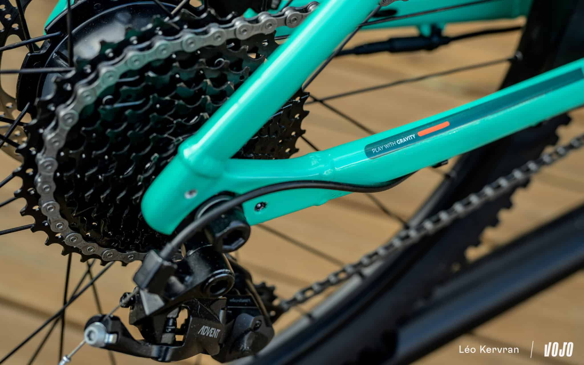 L’équipement est plutôt intéressant malgré le prix puisque le vélo est équipé d’un amortisseur RockShox Deluxe et surtout de la nouvelle fourche RockShox Psylo Gold (lire Test | RockShox Psylo Gold RC : simple et flatteuse !), de roues Sun Ringlé chaussées de pneus maison et d’une étonnante transmission Tektro 1×11. Tektro, ce n’est pas un nom qu’on a l’habitude de voir sur ce poste mais il s’agit tout de même de la maison-mère de TRP, qui veut concurrencer Sram et Shimano sur les transmissions haut de gamme alors, pourquoi pas ?
