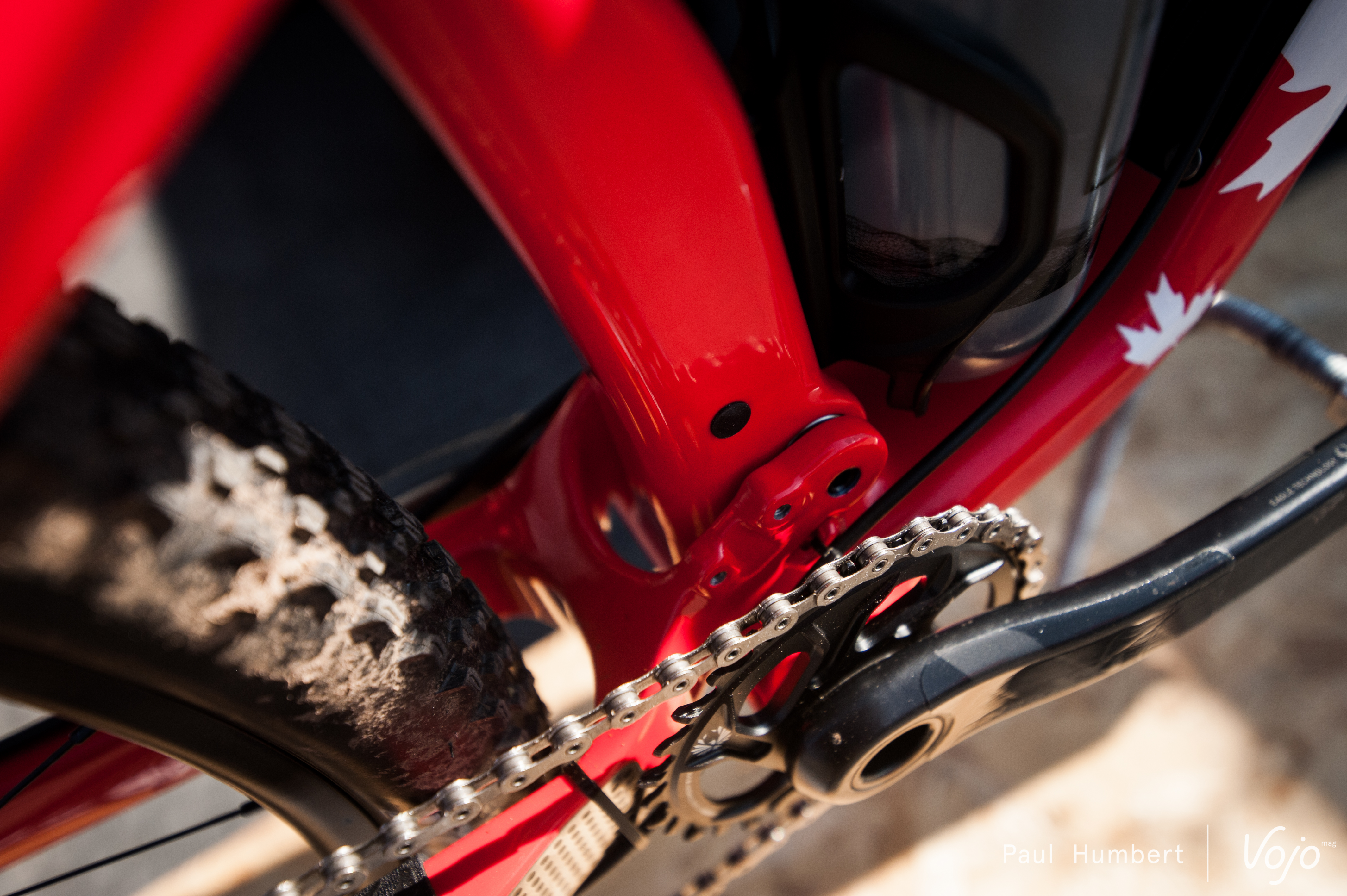 Le vélo reste compatible avec le montage d’un dérailleur avant, mais les plateaux ne peuvent excéder 28/40 dents. En mono, ils ne peuvent dépasser 36 dents en Race Face et 38 en Sram. Le boîtier de pédalier est en Pressfit BB92.