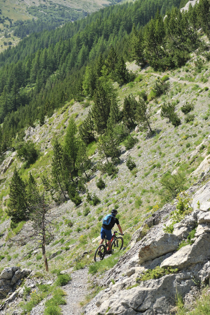Après une descente qui les mènera au pied du Plan Lachat, le parcours entrera dans une montagne sauvage où l’on roule dans un univers de rocs et de pierriers.
