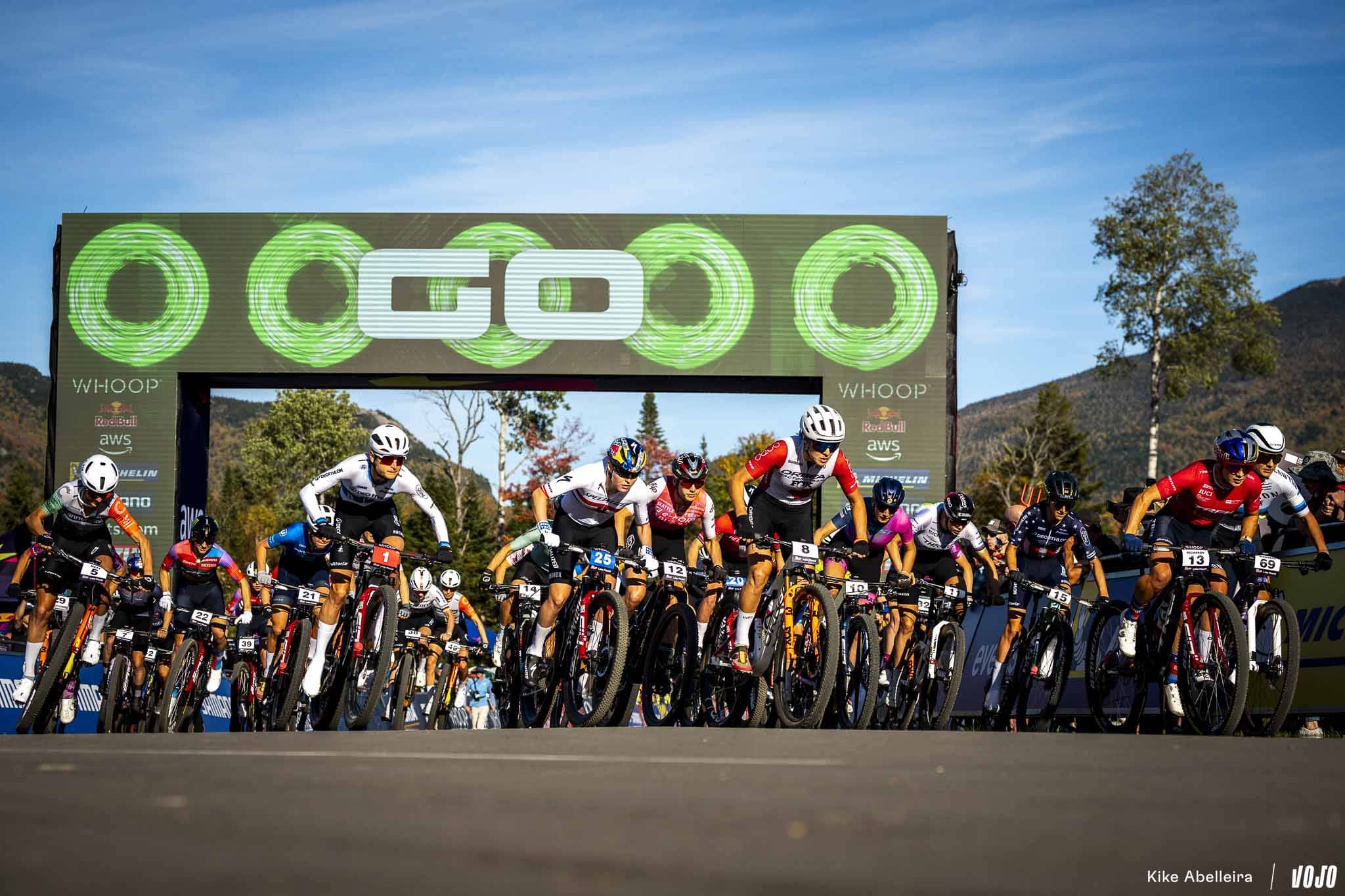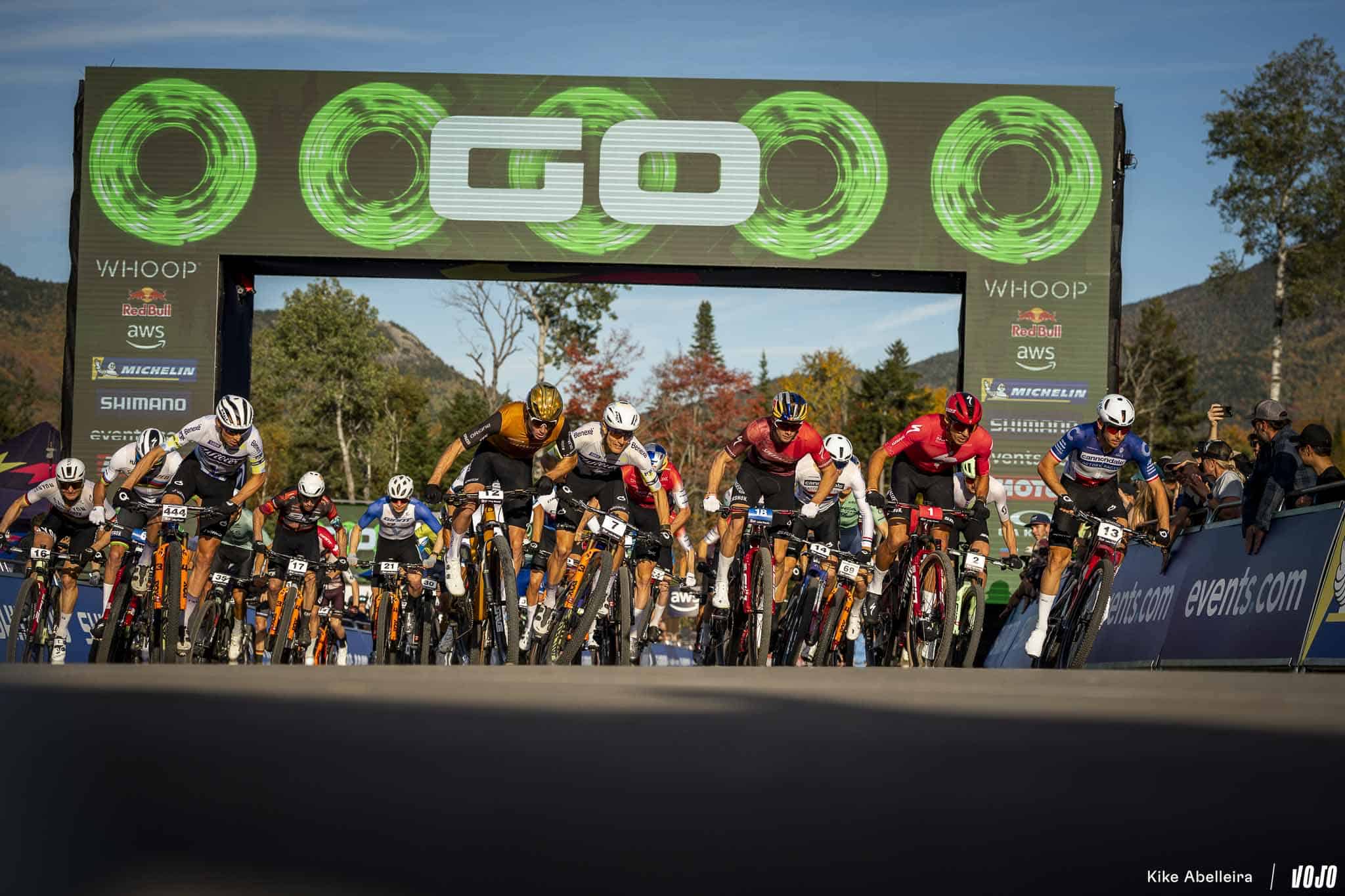 Du bleu-blanc-rouge en ce départ de la course Hommes, avec Luca Martin et Mathis Azzaro aux avant-postes. On notera également le très bon départ d’un autre Français : Adrien Boichis, champion du monde de la discipline en catégorie U23, et bien placé dans la roue de Victor Koretzky !