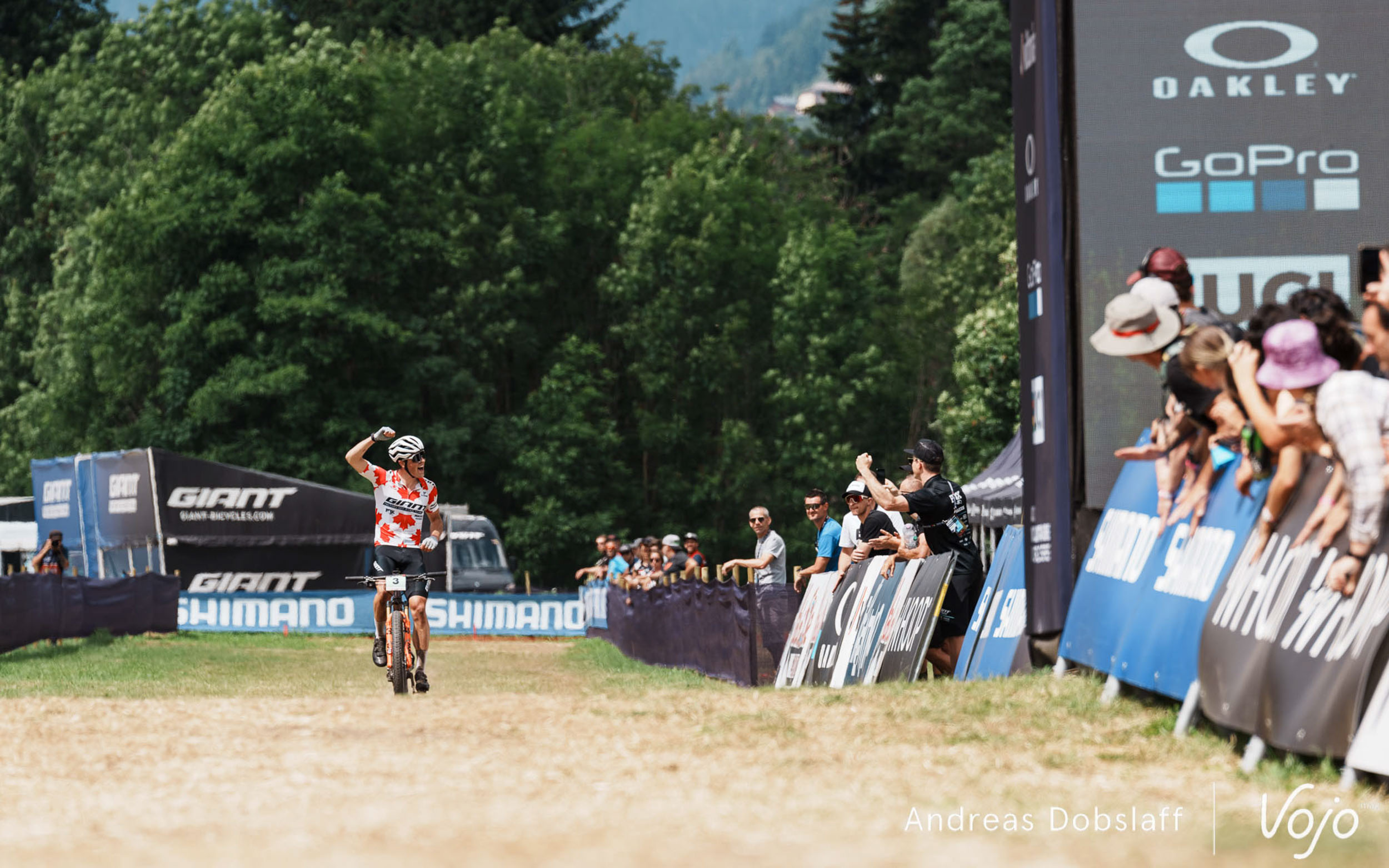 Cette stratégie de gestion durant une bonne partie de la course de la pilote néo-zélandaise porte ses fruits puisqu’elle parvient à revenir sur Blöchlinger dans le dernier tour et coiffe la pilote du Liv Factory Racing sur le fil.