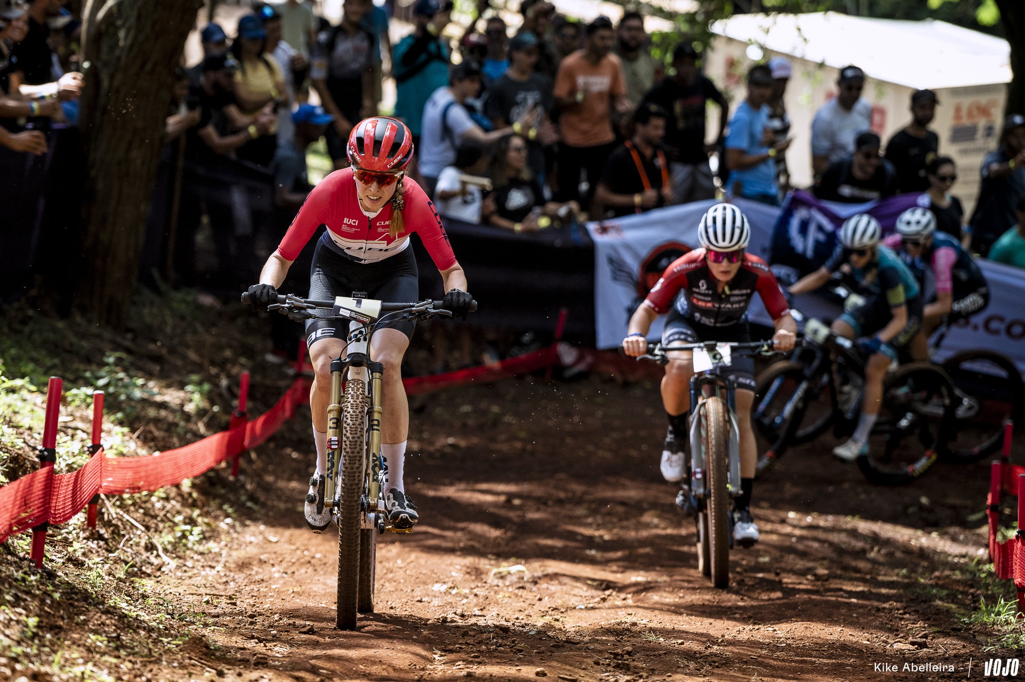 Auteure d’un week-end parfait en remportant à la fois le XCC et le XCO lors de la première manche de la saison le week-end dernier, l’Allemande Kira Böhm (Cube Factory Racing) débutait cette seconde manche brésilienne avec une cible dans le dos… surtout lorsqu’on se rappelle que celle-ci a mis fin à tout suspense à quatre tours de l’arrivée lors du XCC de la précédente manche. Aujourd’hui, la consigne pour ses adversaires est claire : ne pas laisser filer la pilote du Cube Factory Racing seule en tête.