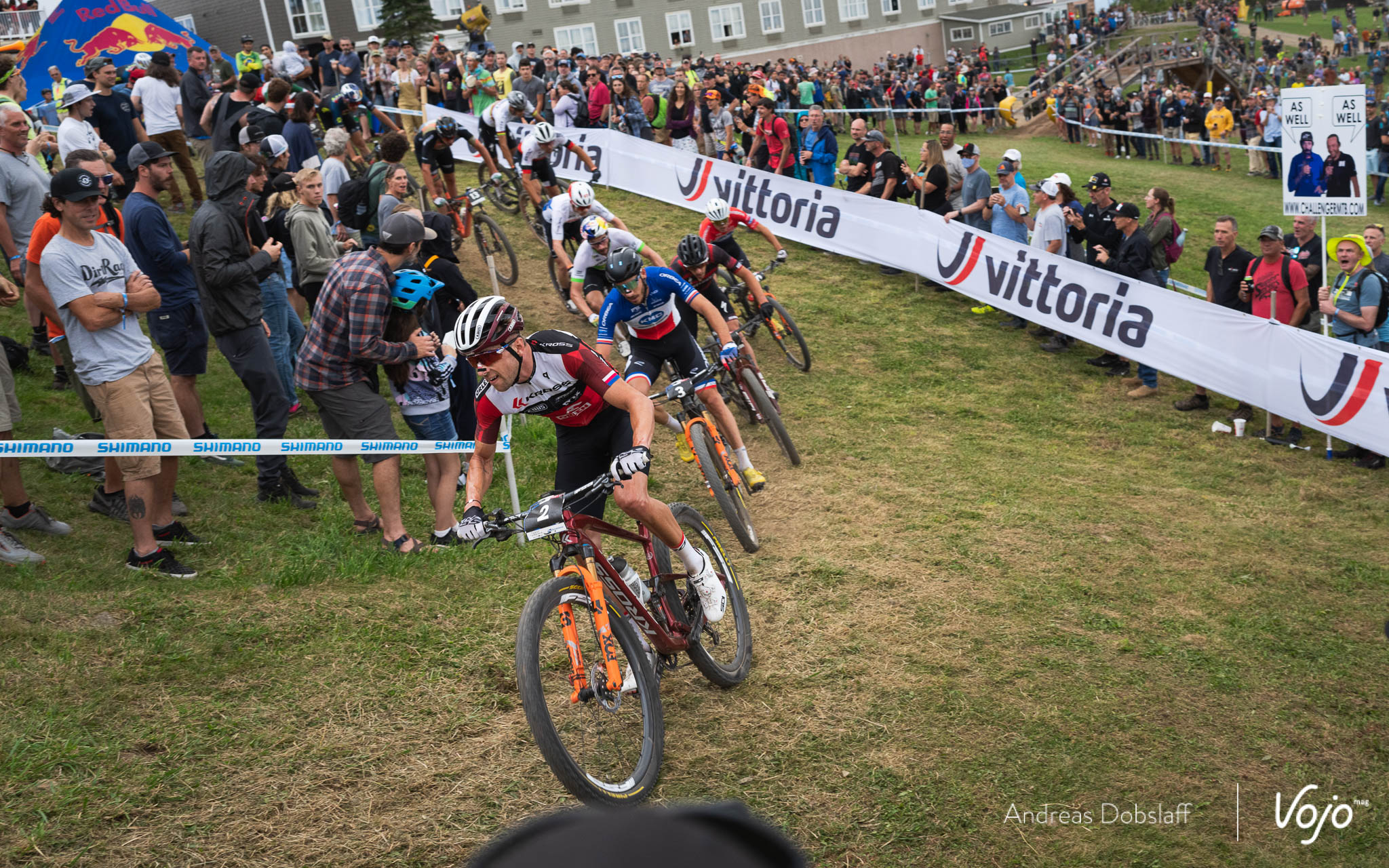 Dans le premier tour, Victor Koretzky prend les devants. Visiblement très à l’aise, il se permet même quelques figures sur les sauts, à la manière d’un certain Nino Schurter.
