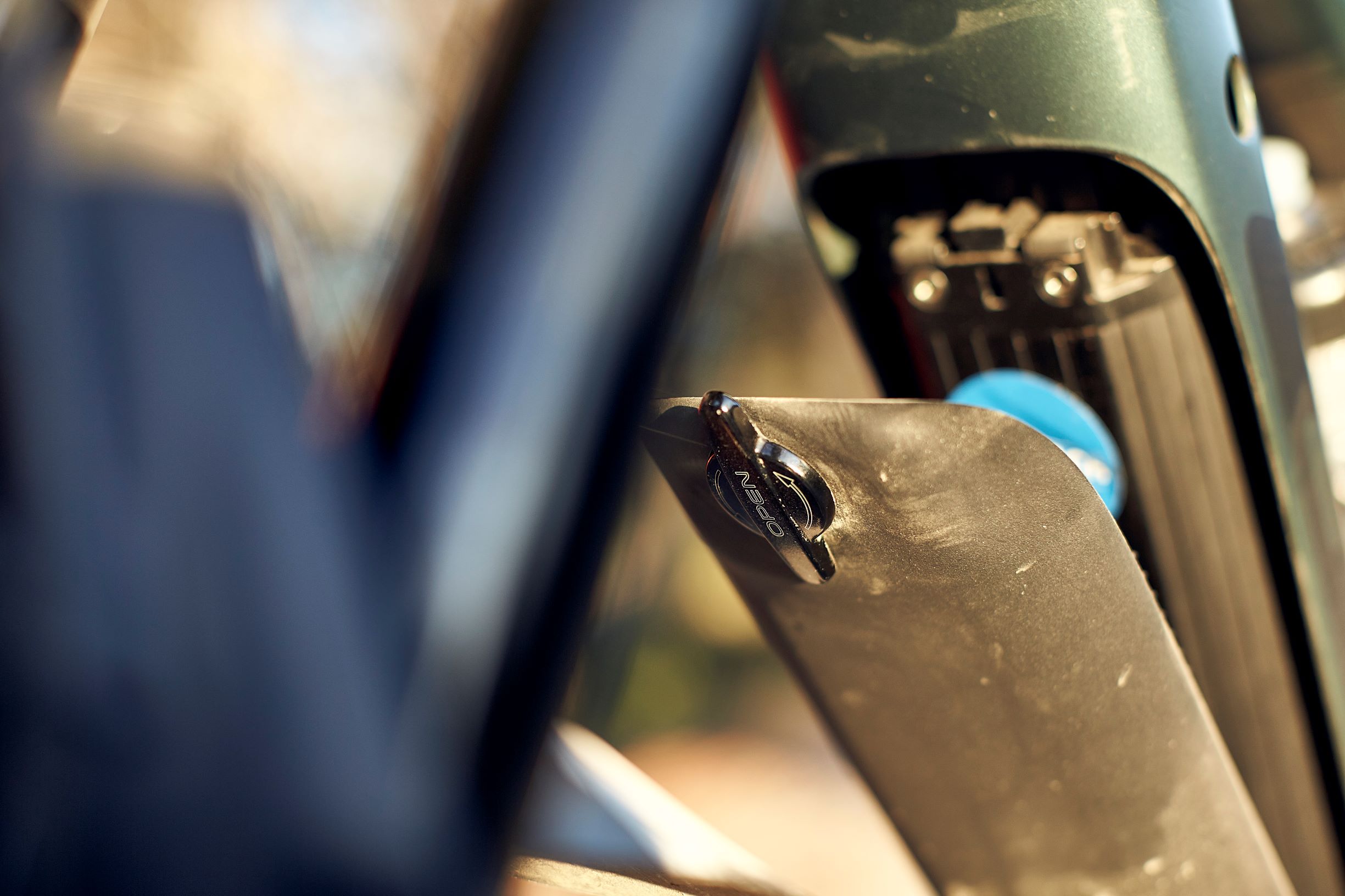 Si on apprécie le système simple et fiable qui permet d’accéder à la batterie sans clé, on regrette le positionnement du port de chargement (par ailleurs de belle facture, comme toute la finition du vélo) en haut du tube diagonal. Par rapport à un port au-dessus du boîtier de pédalier, cela complique un peu les choses lorsqu’on souhaite recharger sa batterie sans la démonter du vélo.