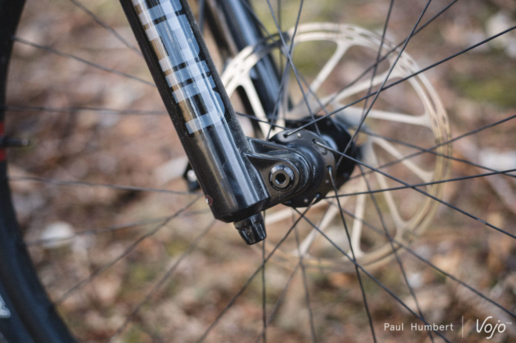 Une fois les tokens installés et la pression réajustée légèrement, on retrouve un comportement homogène, simple et prévisible. Clairement, on retrouve cette sensation de fourche qui plonge quand on engage vraiment sur le vélo dans la pente ou dans un appui, mais pour une fourche à ce prix là, on est vraiment sur une très bonne base. A haute vitesse, la Rockshox Domain ne bronche pas et suit le rythme, sans apporter toutefois la même finesse qu’une fourche équipée d’une cartouche plus haut de gamme.