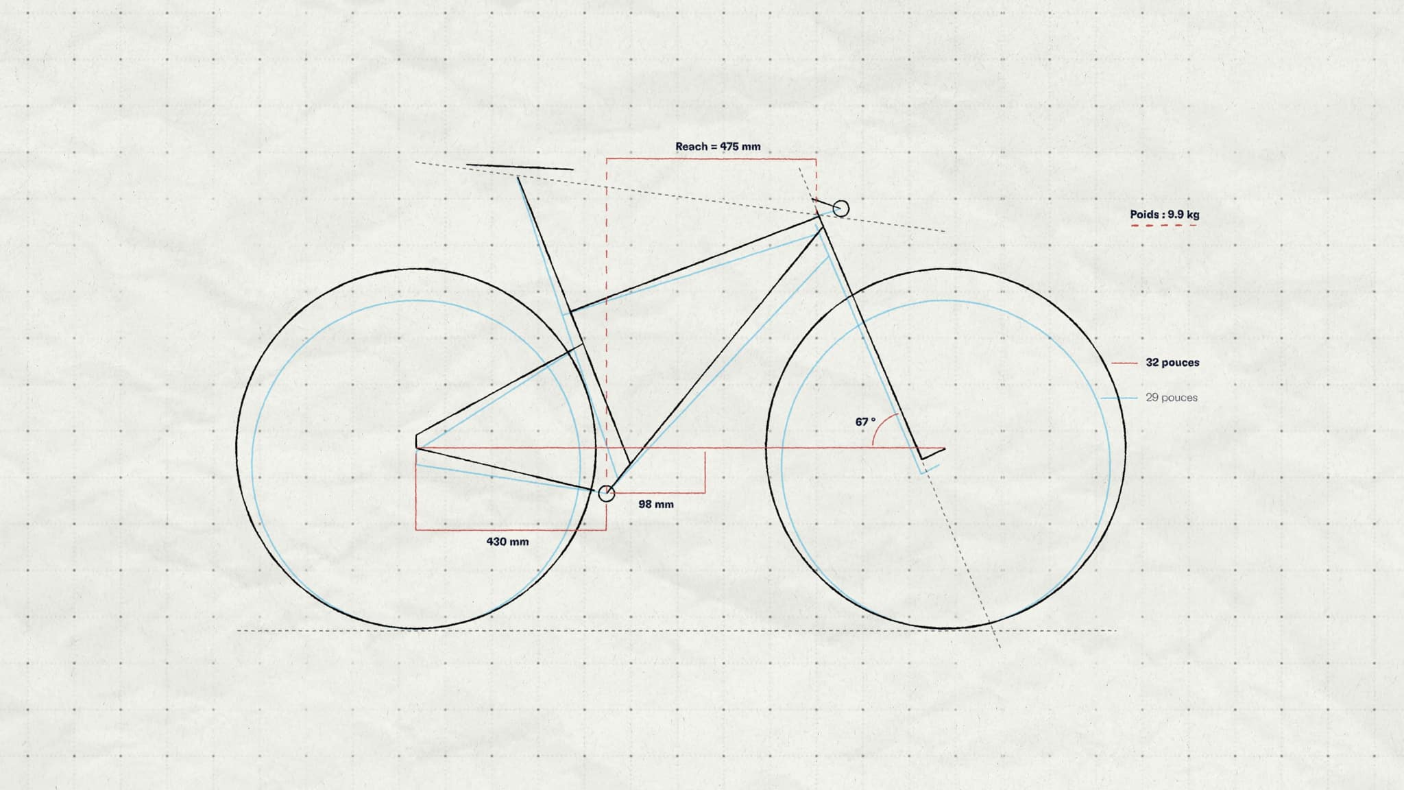 Côté géométrie, la conception n’était pas de tout repos. Des roues plus grandes impliquent une refonte complète du cadre, afin d’éviter de se retrouver au guidon d’un « paquebot ».