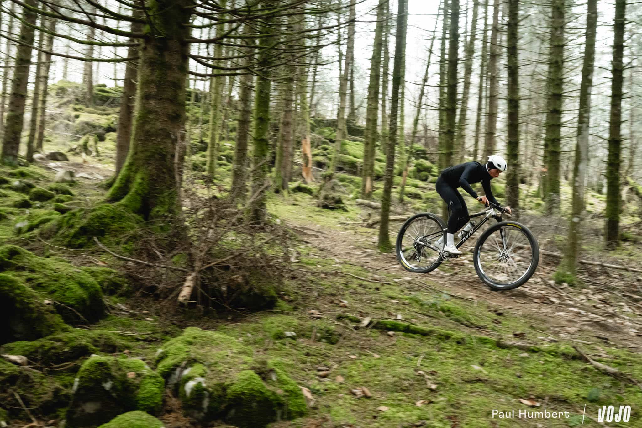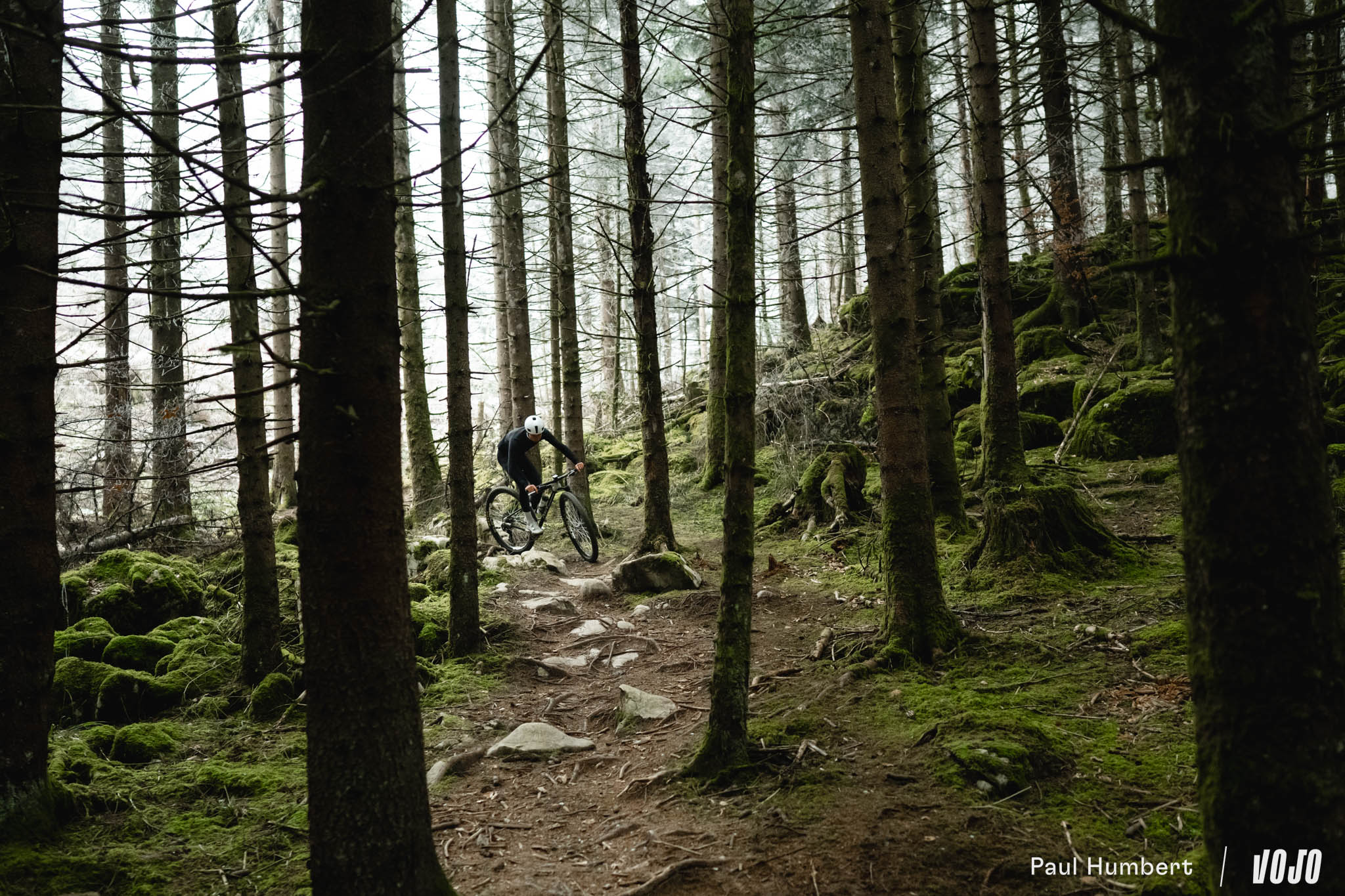 « C’est vraiment fou. On sent que quand ça va vite, vraiment, on est sur une lancée et on a un vélo qui lisse le terrain, un vélo qui simplifie un petit peu les passages cassants, un vélo qui donne accès à plus de lignes. Avec les bases courtes que Clément réussit à faire avec cette géométrie, ça donne un vélo qui est vraiment plutôt maniable. »