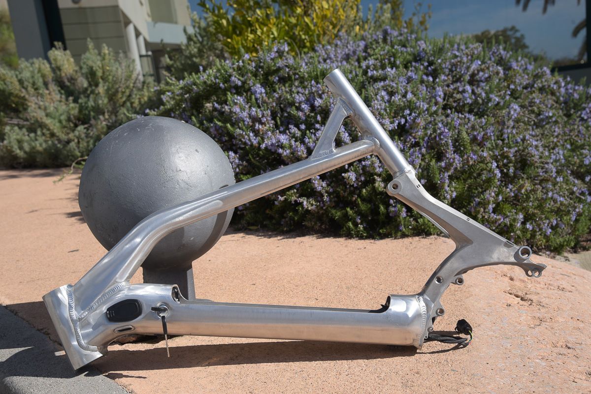 Pour abriter le moteur, la protection de base a été développée spécifiquement en inversant la logique : après avoir roulé sans protection, les impacts ont été relevés ; et l’élément, dessiné.