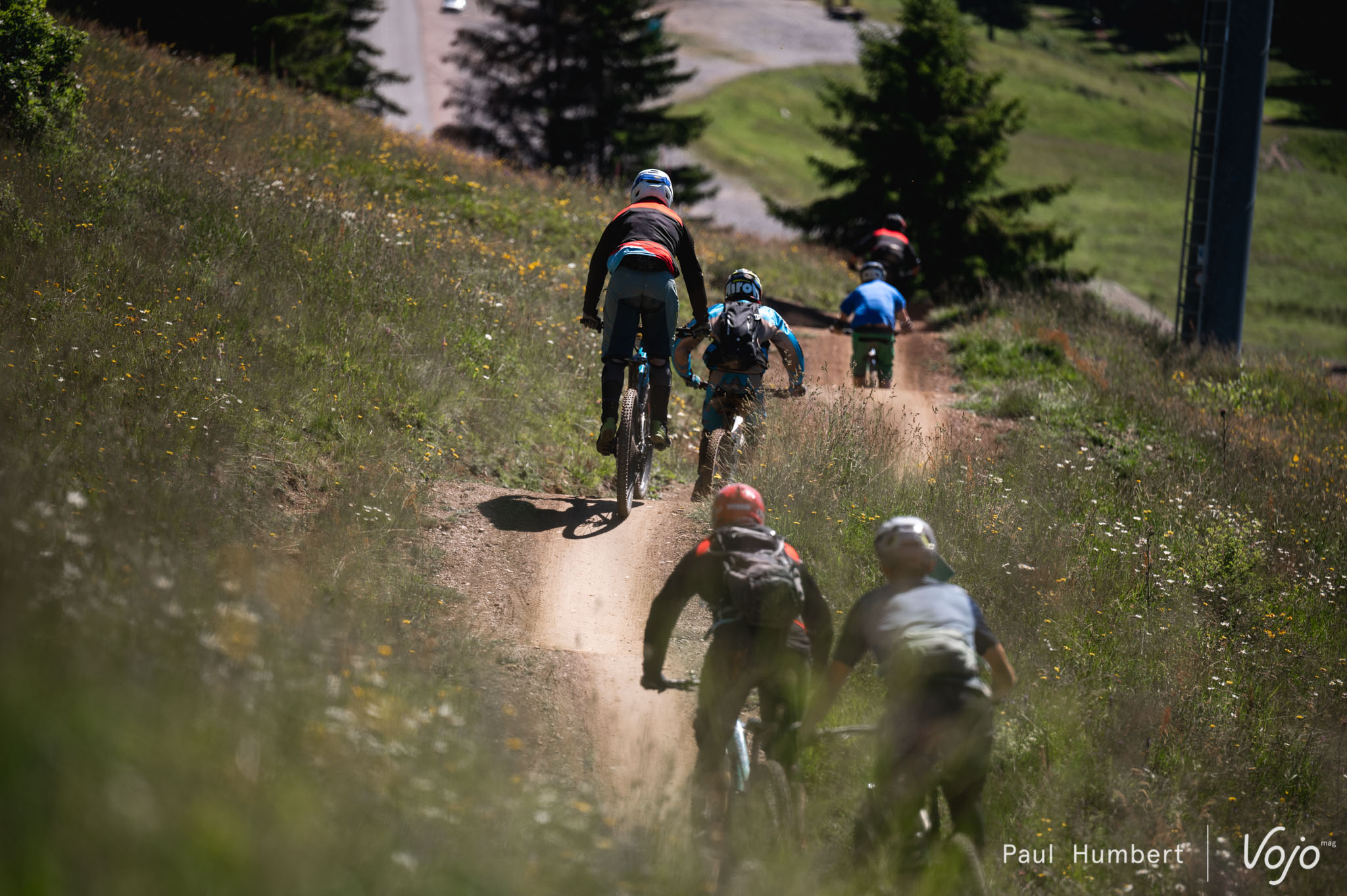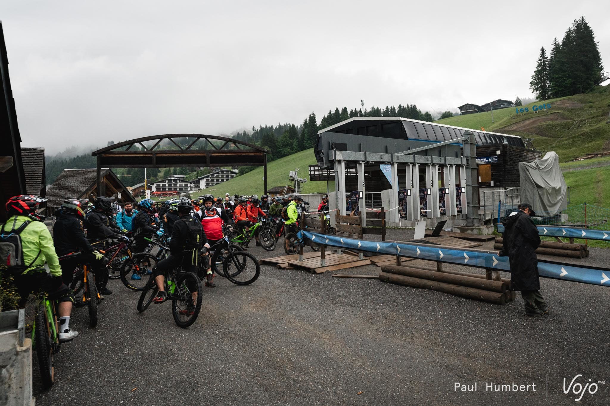 Après la grande bataille du vendredi, nous sommes retournés samedi sur des sentiers qui avaient presque entièrement absorbé l’humidité. Un véritable succès côté météo, mais qui aura occasionné le seul véritable point noir de cette édition : l’attente aux remontées mécaniques occasionnée par quelques transferts d’inscriptions et, surtout, une présence renforcée des riders humides du vendredi venus régler leurs comptes avec les sentiers lors de la plus « grosse journée ».