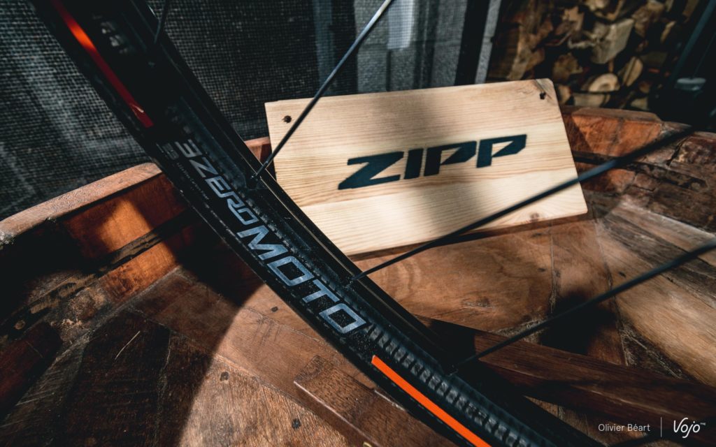 La force des jantes Zipp va résider dans leur capacité à se déformer, ce qui va permettre, outre la tenue de route, de préserver plus les pneus et de se passer d’inserts (type Cushcore, Pepi’s,…), très populaires dans la discipline mais qui ajoutent du poids. « Loin de moi l’idée de dire qu’on ne crève plus avec les jantes Zipp 3Zero Moto, mais nos tests semblent montrer assez clairement que cela réduit très fort les risques de pincement, même si on roule à très basse pression. En plus de 60.000km de tests avec 37 pilotes et 4 générations de jantes, nous n’avons eu que 2 crevaisons rapportées par nos testeurs, et imputables à un pincement entre la jante et le sol. A ce niveau, cela nous semble tout de même assez significatif. Sur les dernières versions, nous n’avons pas non plus encore eu de casse, et les résultats en labo montrent que nous avons sans aucun doute une des jantes les plus solides du marché, pour ne pas dire la plus solide », sourit Bastien Donzé.