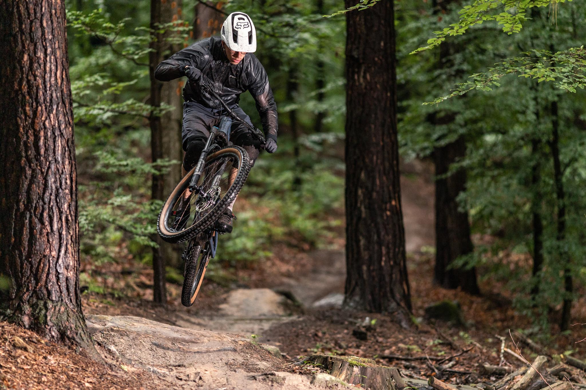 On est installé bien au centre du vélo, avec suffisamment de confort et de dégagement pour être à l’aise en descente. Sur ce vélo, on souligne une nouvelle fois la présence à l’avant d’un pneu Maxxis Rekon qui n’est pas vraiment à sa place pour la pratique à laquelle ce vélo le destine. La marque en a d’ailleurs en partie conscience en changeant le pneu avant de notre modèle de test. Elle insiste pourtant sur le fait qu’un Rekon conviendra à un public qu’elle estime large.