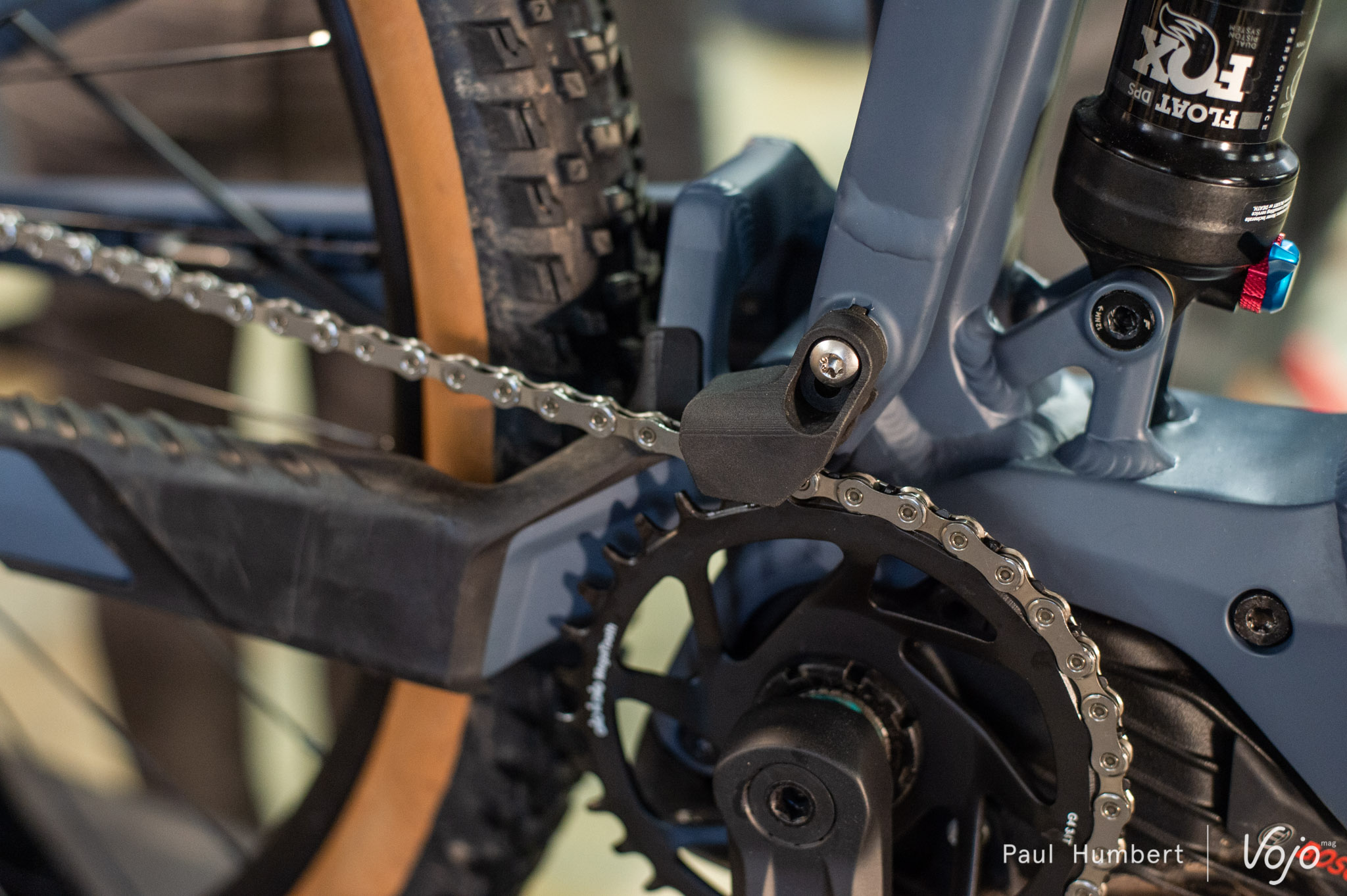 On repère également un petit guide-chaîne qui n’est pas présent sur les autres modèles de la marque.
