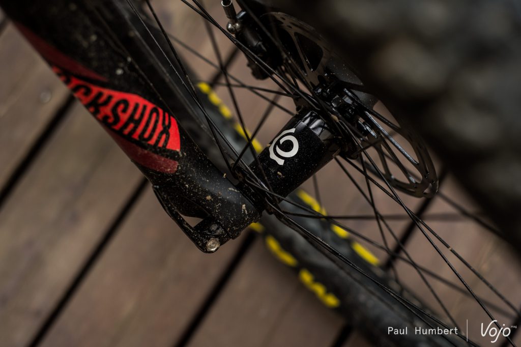 La première phase de réglage du vélo nous a demandé un petit peu plus de temps qu’habituellement. En effet, avec un SAG à 30%, il nous était difficile de prendre tout le débattement, même dans les portions défoncées. On ne ressent pas d’inconfort mais autant aller au fond des choses. Finalement, c’est vers 35% du débattement qu’on s’arrête en conservant toujours de très bonnes performances à la pédale.