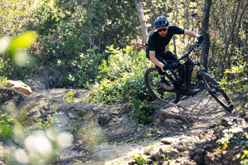 Autre bon point, la gestion du poids du moteur et de la batterie : le vélo est parfaitement proportionné et on ne se fait jamais déséquilibrer ou pousser hors de la trajectoire. Un constat valable dans la pente bien sûr mais aussi en virage ou dans le lent et technique. Vous comprendrez donc pourquoi on n’avait pas trop envie de quitter ce jardin de grands enfants, tant ce 4060 Z donnait envie d’essayer de nouvelles choses.
