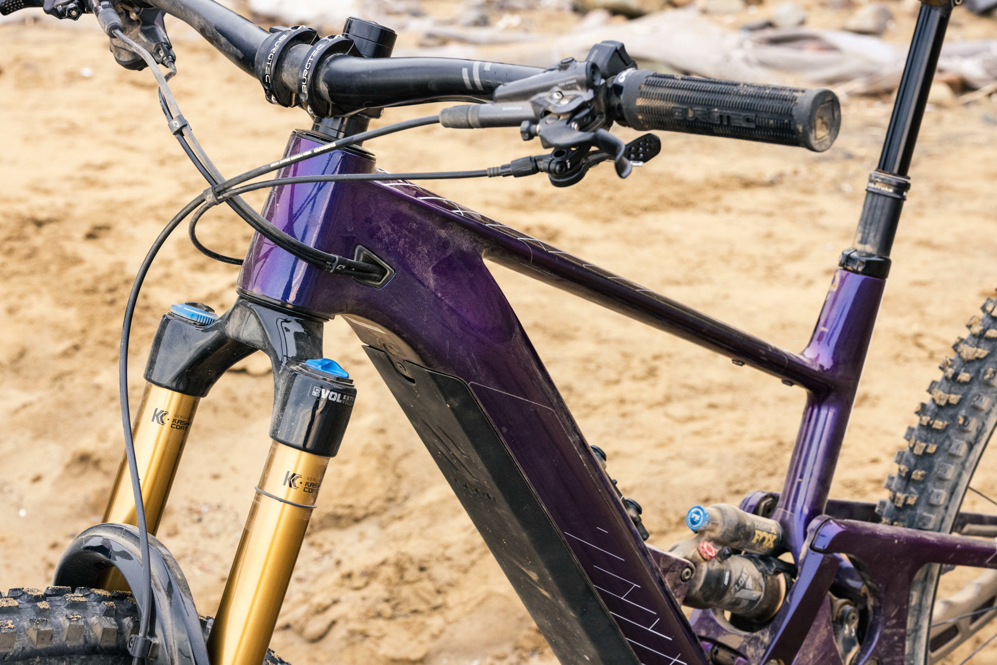 On pourrait s’attendre à ce que la suspension ait demandé un peu plus de travail, avec le moteur et la batterie qui imposent le déplacement des points de pivot, mais Christoph Bigler nous explique qu’ils ont été surpris de voir que même avec cette contrainte, la cinématique s’adaptait très bien à l’e-bike.